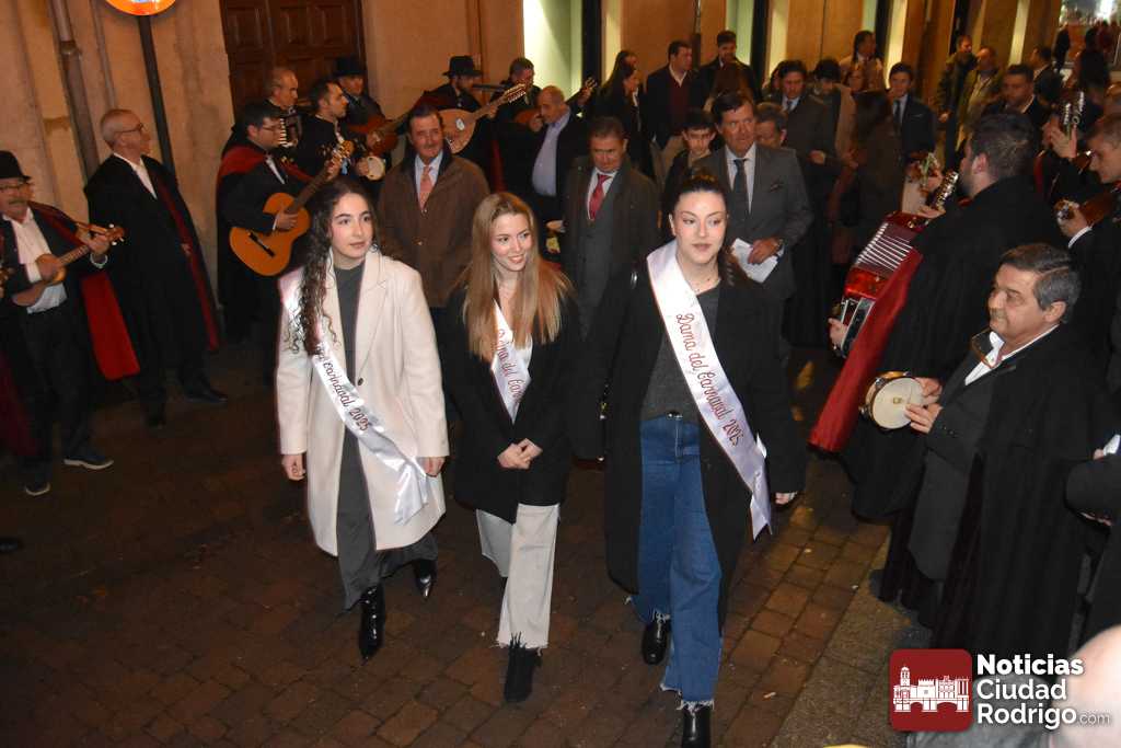 El pregón de la Peña El Caballo levantó gran expectación entre los mirobrigenses en la tarde de este viernes 21 de febrero, mucho público para escuchar el pregón especial de os hermanos de la Puerta. Juan Luis Montero, en representación de la Peña El Caballo, fue el encargado de presentar la entrada de la damas y también de la reina del Carnaval, acompañada por el galardonado con la Garrocha de Plata Álvaro Matías.