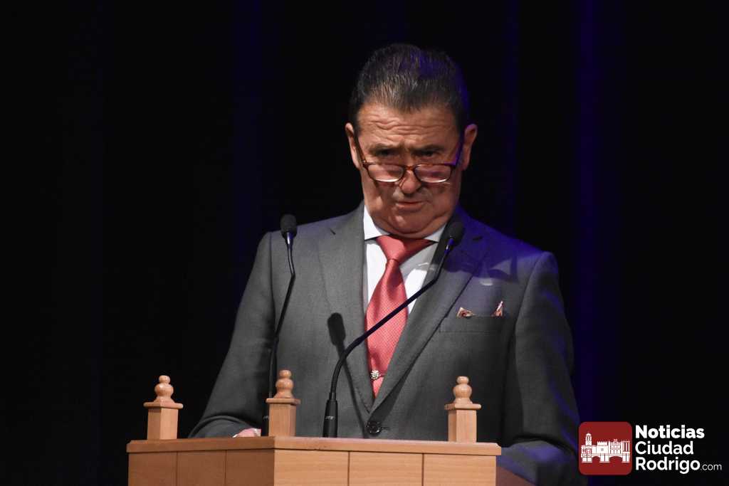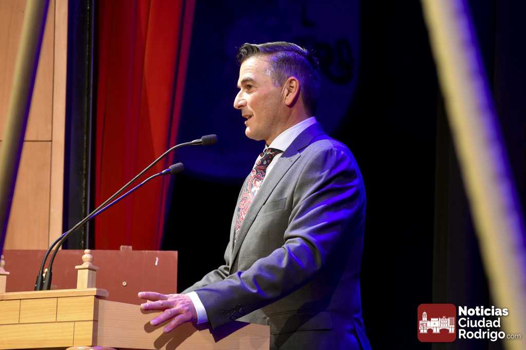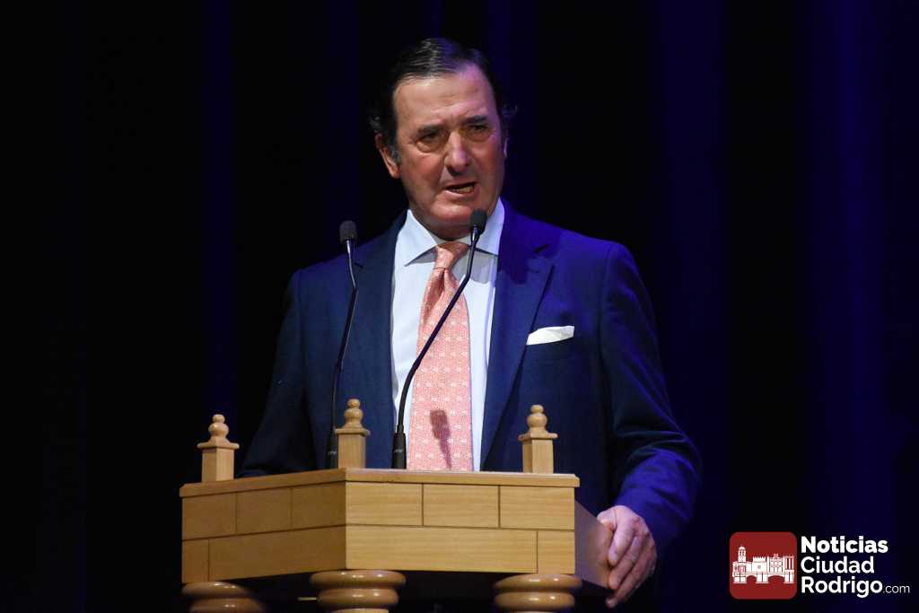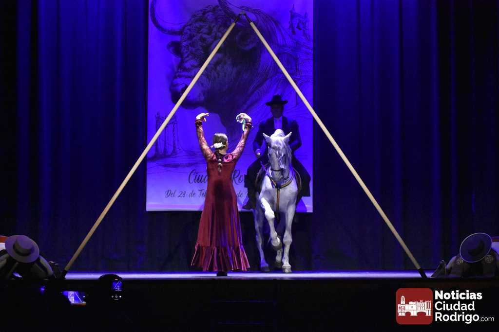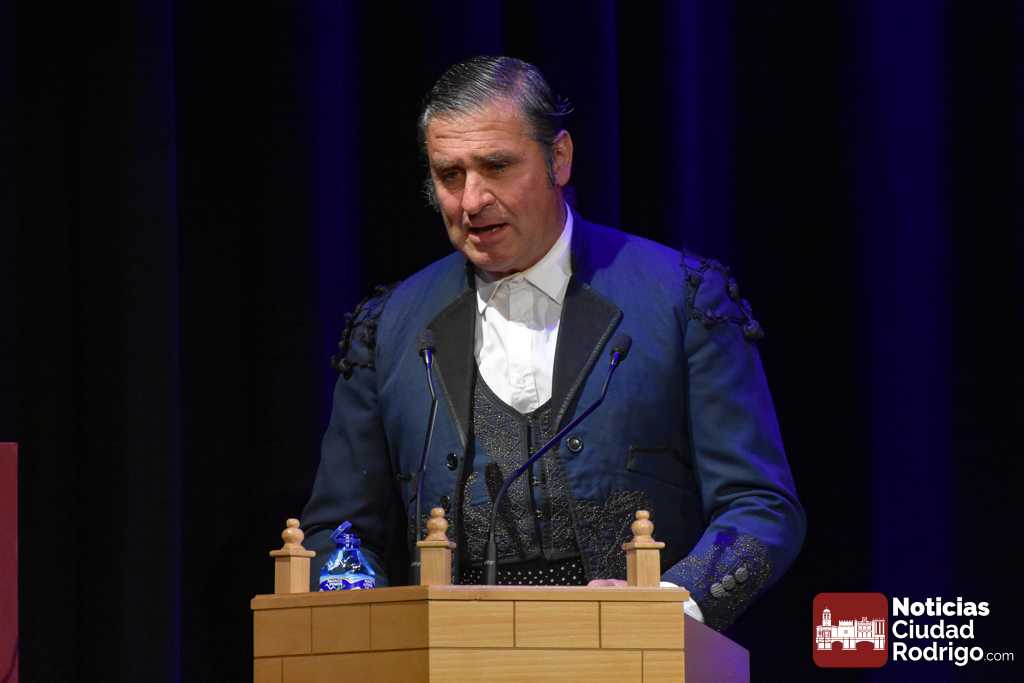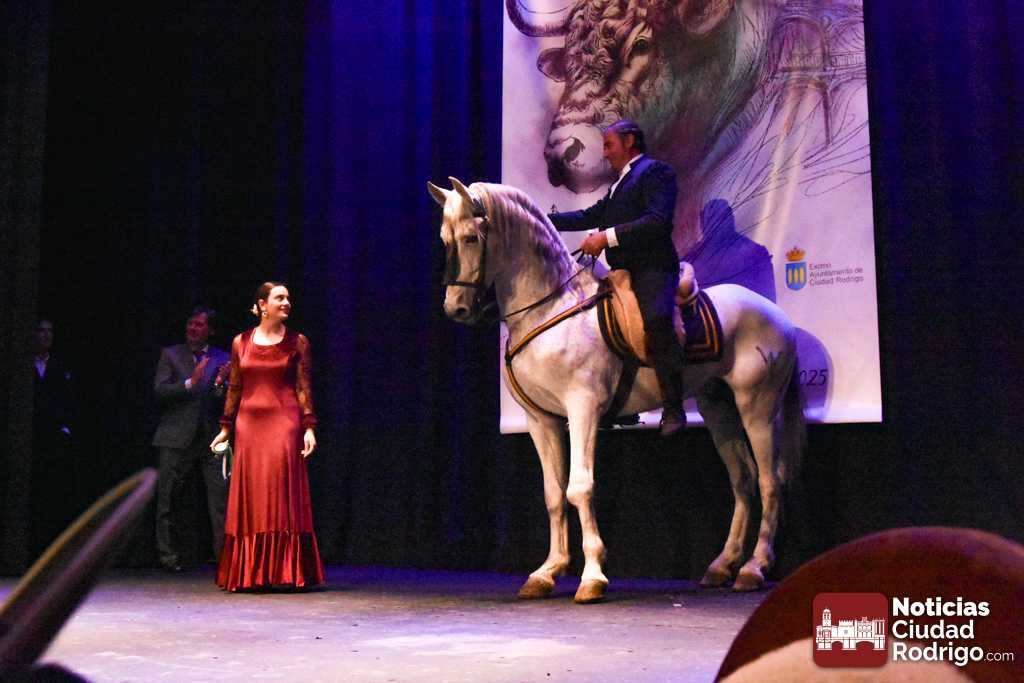 Volvió a cantar Antonio Puerta un tema dedicado a Ciudad Rodrigo y, a continuación, intervino Pablo de la Puerta, que se refirió al Carnaval de Ciudad Rodrigo, «celebración que une al hombre y al caballo, que se forja desde la infancia y se transmite de generación en generación (…) En la familia de la Puerta, el caballo no es sólo una afición es forma de vida» y las diferentes disciplinas relacionadas con el caballo practicadas en la familia, hablando también de las 35 yeguas de vientre que tienen en la actualidad. «Desde niños aprendimos a montar no con el afán de competir sino como parte del campo», aprendiendo las faenas de la ganadería. Rindió homenaje a los garrochistas que han marcado la historia, a quienes han hecho del caballo su vida, » a esos jinetes que nos recuerdan que el acoso y derribo es más que un deporte, un legado». Mencionó, entre otros, al Marqués de Bayamo, José Luis Buendía, Pérez Tabernero, Maestro Capea, familia López Chaves, Dionisio Holgado, Mariano Fernández Zumel y la familia Montero Martín, Perita, figuras que han contribuido a que Salamanca y Ciudad Rodrigo sean referentes en el acoso y derribo en España. Y agradeció que Ciudad Rodrigo siguiera apostando por el caballo.