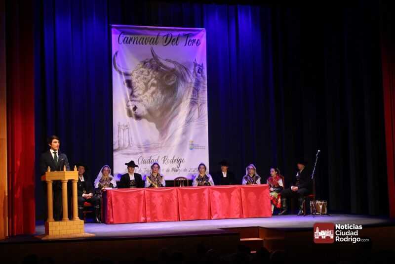 Después ya pasó a hablar de toro como protagonista, «el alma misma del Carnaval». Recordó su participación en el Carnaval como torero y después también destacó la figura del caballo como símbolo de la fiesta carnavalesca, «fiel compañero», «su porte majestuoso y su nobleza» hacen de esta celebración algo único.