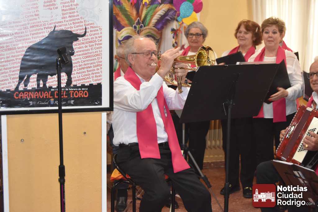 María Isabel Martín Álvarez ha sido la pregonera del Centro de Mayores de Ciudad Rodrigo en el día de hoy. En el acto ha participado la rondalla Aires del Águeda. En su pregón, habló del Carnaval del Toro y su significancia en el calendario mirobrigense, de forma cronológica (desde San Blas hasta el día), en torno a sus tradiciones, como las coplas de la Rondalla III Columnas “bendita rondalla que nos anima”, a los montadores de tablaos.
