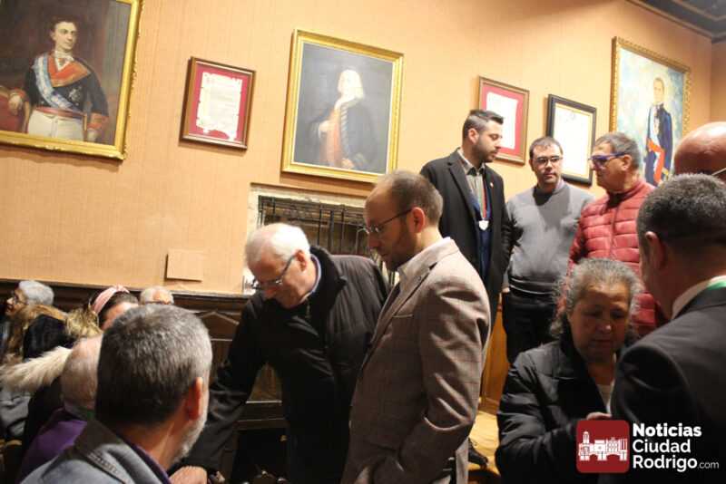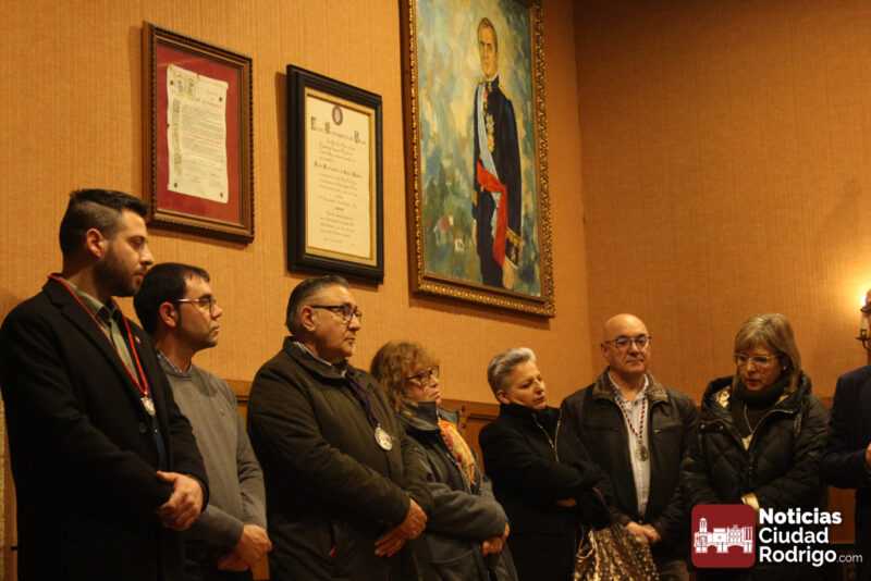 Al acto han acudido el teniente alcalde Ramón Sastre, la concejal Ana María Castaño, el vicario general José María Rodríguez Veleiro, el capellán de la cofradía de la Oración del Huerto Ángel Martín Carballo y los presidentes de todas las cofradías de la Semana Santa de Ciudad Rodrigo, así como los miembros de diversas juntas directivas de cofradías.