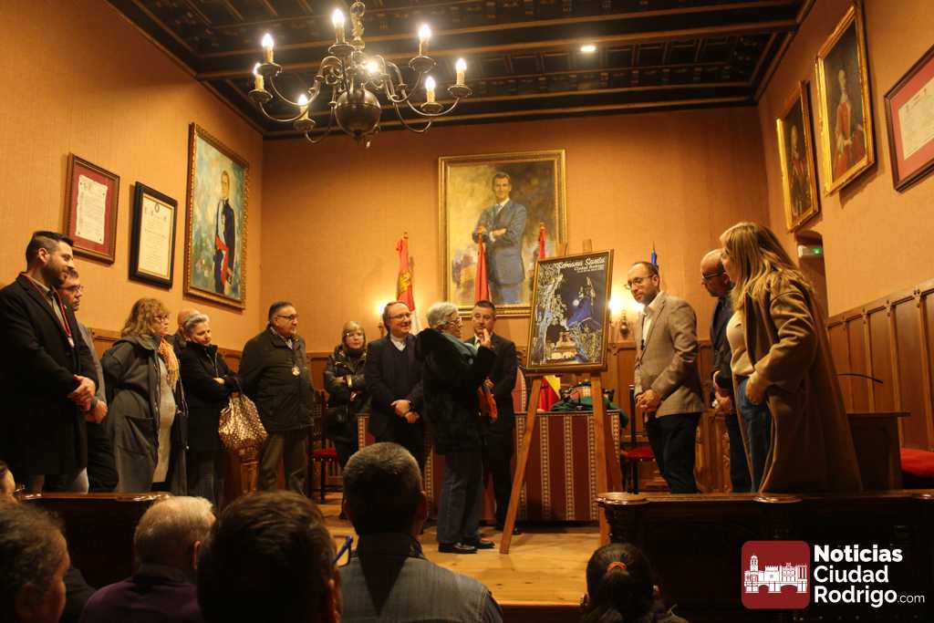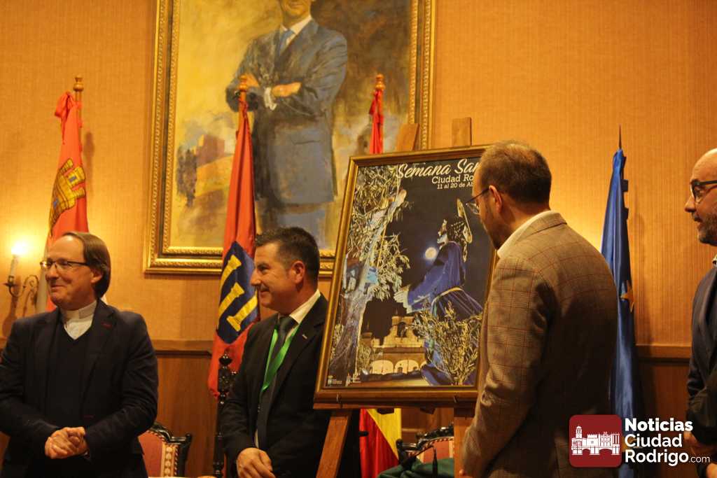En el acto, en el que ha estado presente el alcalde de Ciudad Rodrigo Marcos Iglesias, que ha agradecido la labor de las cofradías de la Semana Santa mirobrigense, también se ha descubierto la imagen anunciadora de los días santos en Ciudad Rodrigo. En concreto se trata de una fotografía del paso de la Oración del Huerto realizada en la plaza Mayor mirobrigense con la Casa Consistorial y la luna como fondo. La fotografía ha sido realizada por Aurora Martín que estuvo también en la presentación.