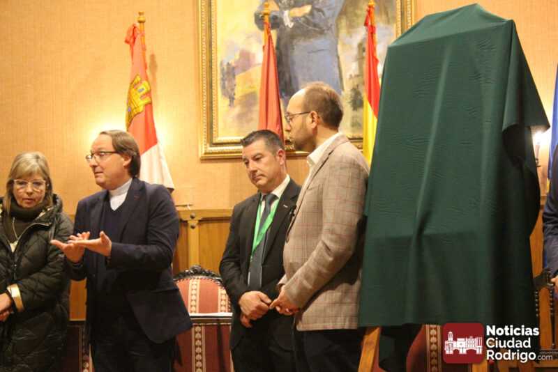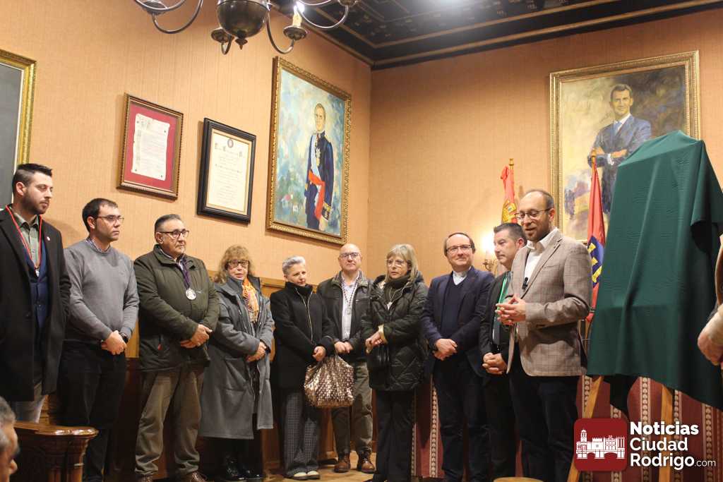El presidente de la Cofradía de la Oración del Huerto de Ciudad Rodrigo. Miguel Hernández ha dado a conocer hoy en el salón de plenos del Ayuntamiento de Ciudad Rodrigo el nombre del pregonero y el cartel de la Semana Santa de Ciudad Rodrigo del año 2025. El pregonero será Daniel Mielgo, ordenado diácono permanente de la diócesis de Ciudad Rodrigo el año pasado, delegado diocesano de Apostolado Seglar y de Pastoral Familiar, junto a su mujer Teresa Anciones.