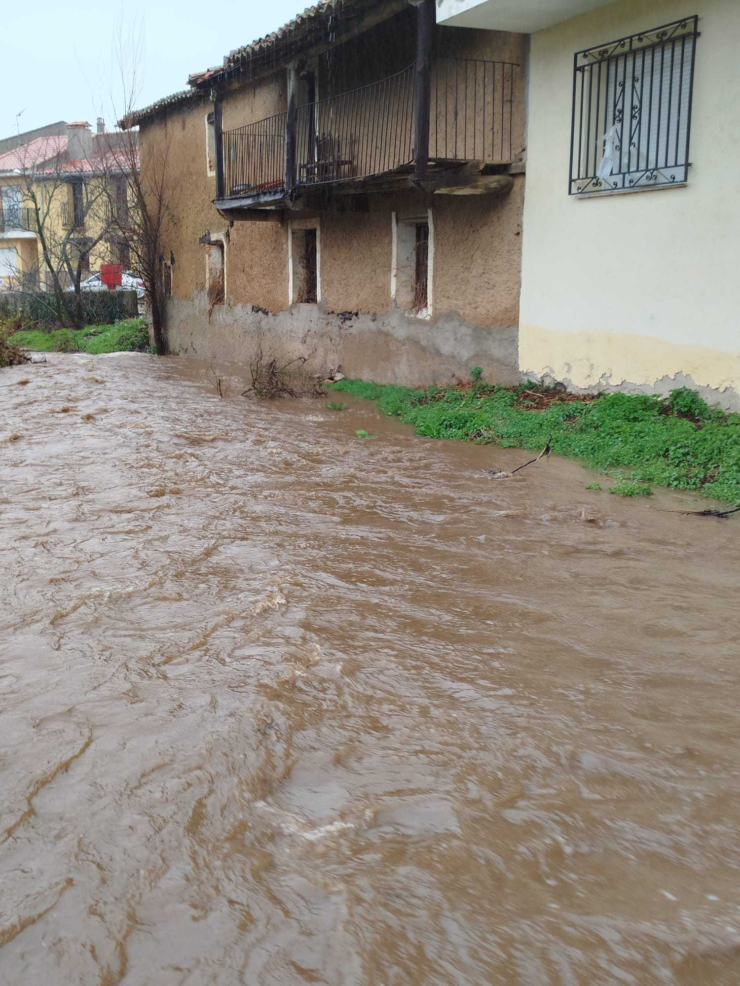 En Serradilla del Arroyo, también el río que atraviesa la localidad ha aumentado su caudal. El Merdero y el Cazueletino llevan muchísima más agua que otros días. Forman parte del territorio urbano, bordeados por casas .