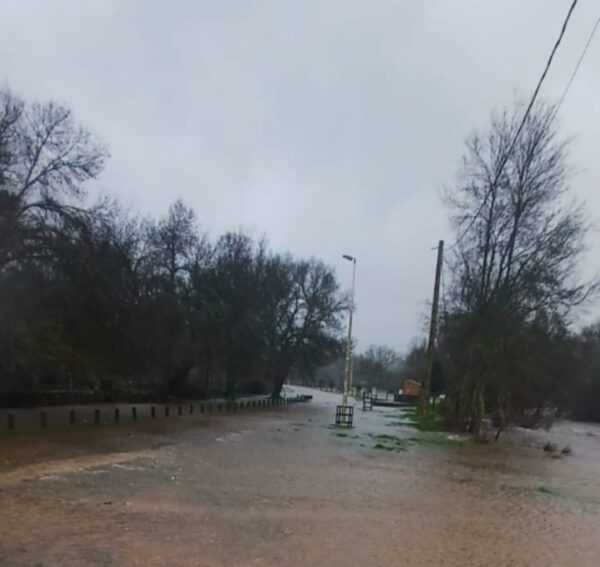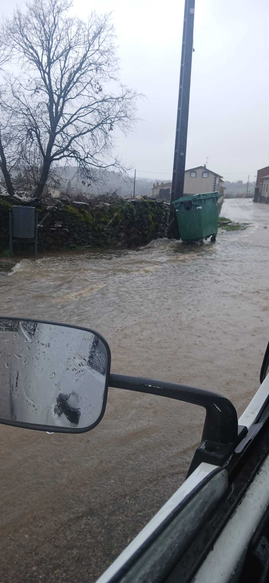 El agua inunda, pero no corta, la carretera de entrada al pueblo y acceso a las piscinas