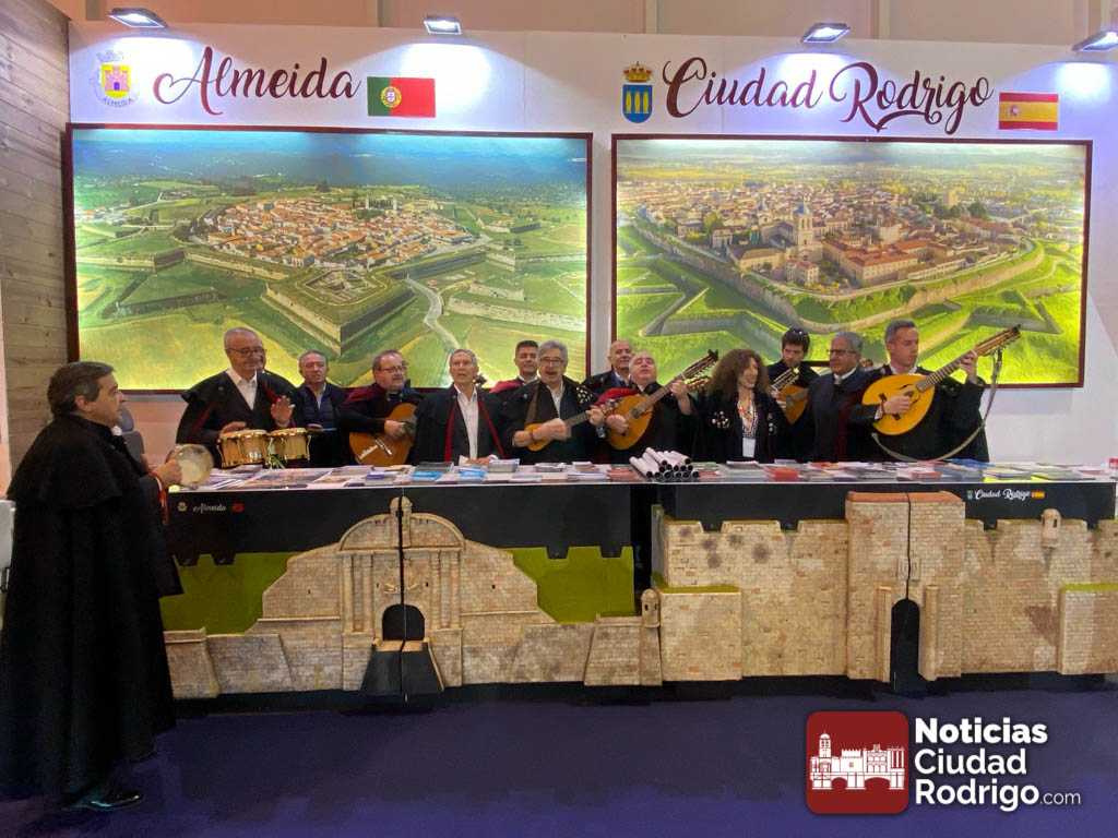 (En la fotografía superior se puede vera la Rondalla III Columnas en el stand de Ciudad Rodrigo y Almeida, con las maquetas completas de la puerta del Conde de Ciudad Rodrigo y la puerta de San Francisco de la muralla de Almeida, realizadas por Alberto Mateos)