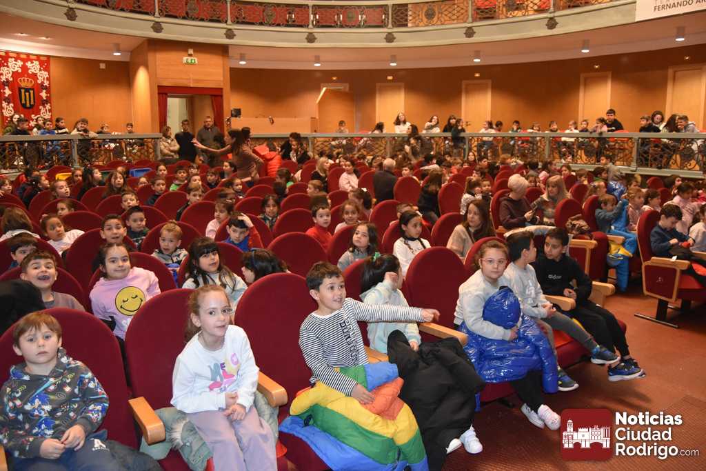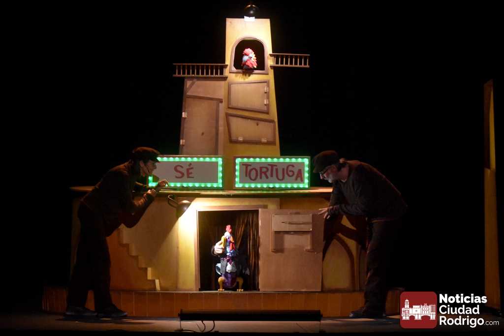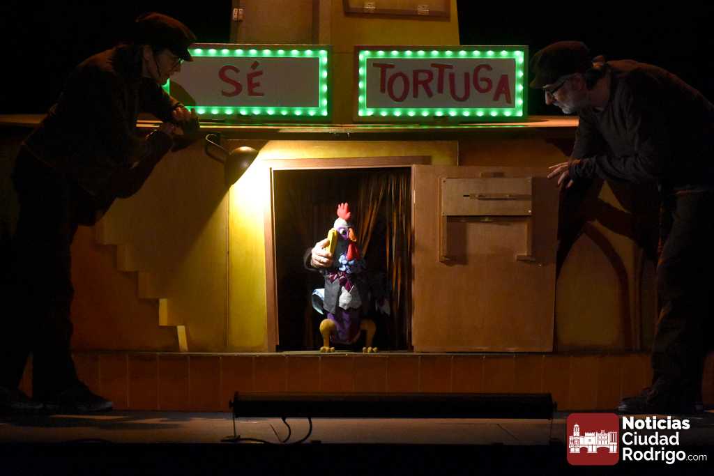 Alrededor de 240 alumnos llegados de diferentes centros educativos de Ciudad Rodrigo y comarca disfrutaron durante esta mañana en el Teatro Nuevo «Fernando Arrabal» de la primera de las obras del circuito «Provincia a Escena» en Ciudad Rodrigo. «Sé Tortuga», de la compañía Xip Xap Teatre de Lleida, encandiló a los niños y niñas con una obra de títeres entretenida y de un gran nivel interpretativo y de puesta en escena.