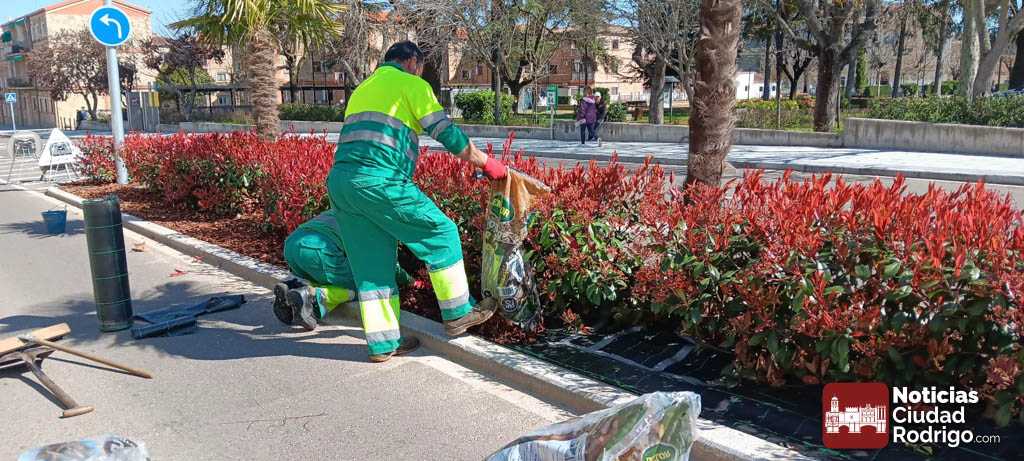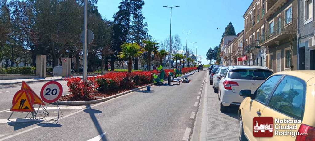 Trabajos de jardinería en la zona de las palmeras de la avenida España de Ciudad Rodrigo