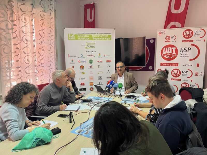 Todas las cuestiones referentes a la convocatoria de Cadena Humana han sido presentadas en rueda de prensa durante la mañana de este miércoles 2 de abril en la sede de Zamora del sindicato UGT por el director general de la Agrupación Europea de Cooperación Territorial (AECT) Duero-Douro, José Luis Pascual.