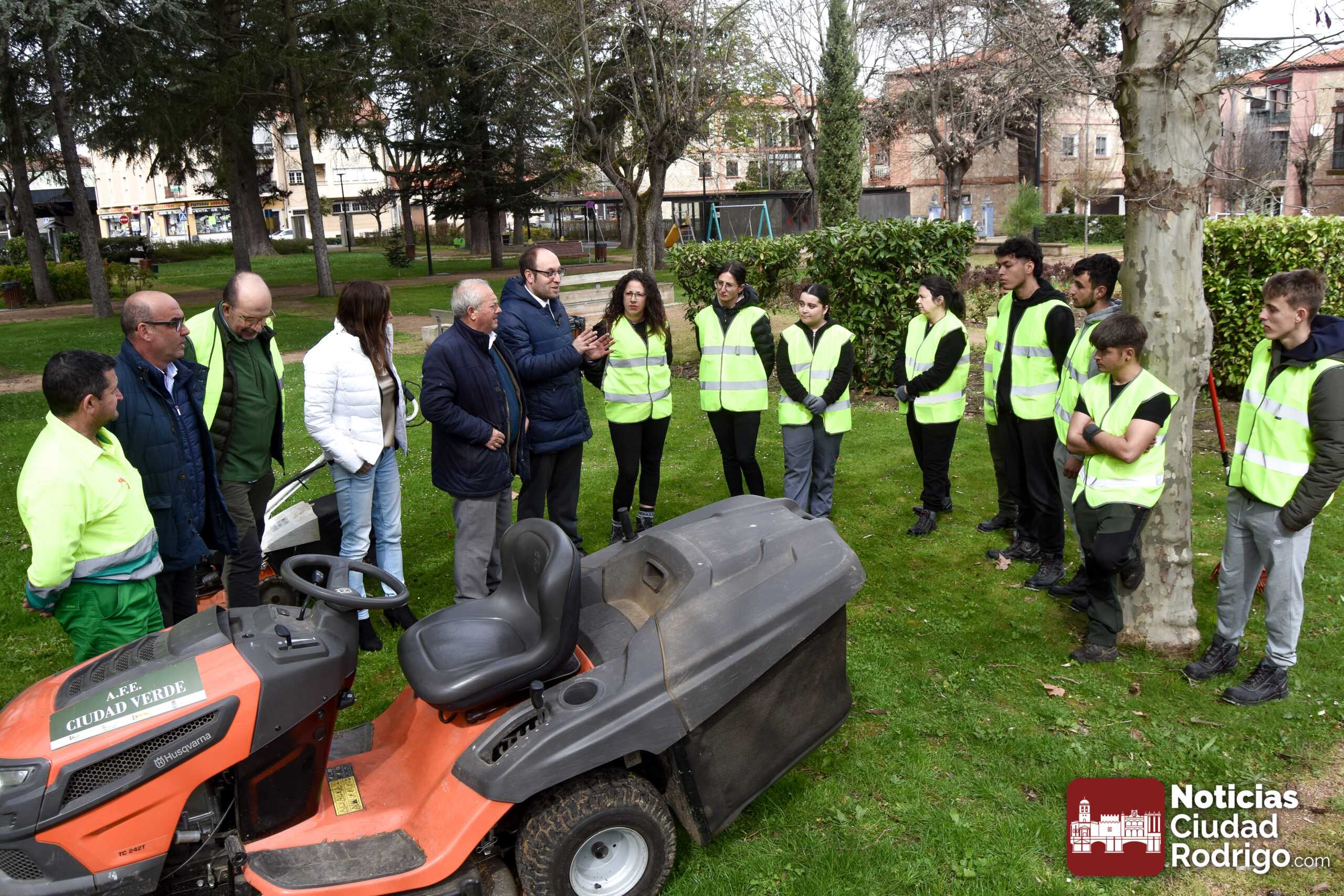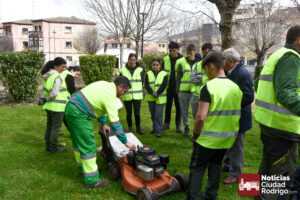 Posteriormente, se realizó la visita a la AFE de Jardinería, donde Marcos Iglesias se remitió de nuevo a las oportunidades laborales, también en Ciudad Rodrigo, dado el número de zonas verdes existentes, e hizo referencia a la frase del concejal de Jardines, José Manuel Jerez, allí presente: «Que os tengan envidia». José Manuel Jerez, por su parte, indicó que estará también muy pendiente de ellos y que las principales labores las desarrollarán en el entorno del rio Águeda, pues la mayoría de horas serán de carácter práctico.