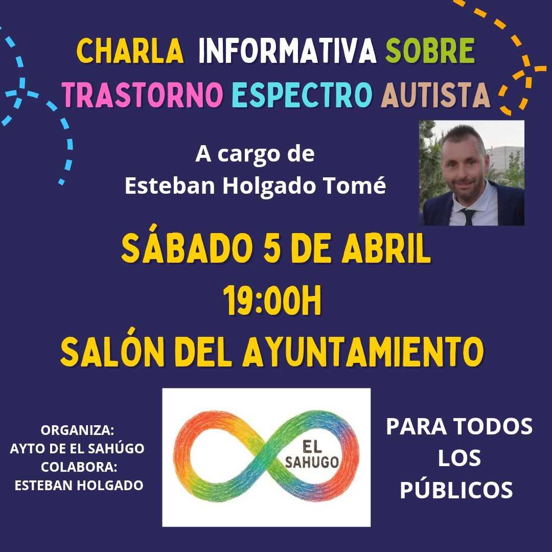 Esteban Holgado Tomé impartirá dos charlas informativas acerca del Trastorno del Espectro Autista en la comarca. Dichas charlas serán en El Sahúgo, el sábado 5 de Abril en el Salón del Ayuntamiento, a las 19:00 h, y en Navasfrías el sábado 11 de abril, a las 19:30 h, en el salón municipal de la localidad, ambas de acceso libre, en las que sensibilizará y concienciará sobre el TEA.