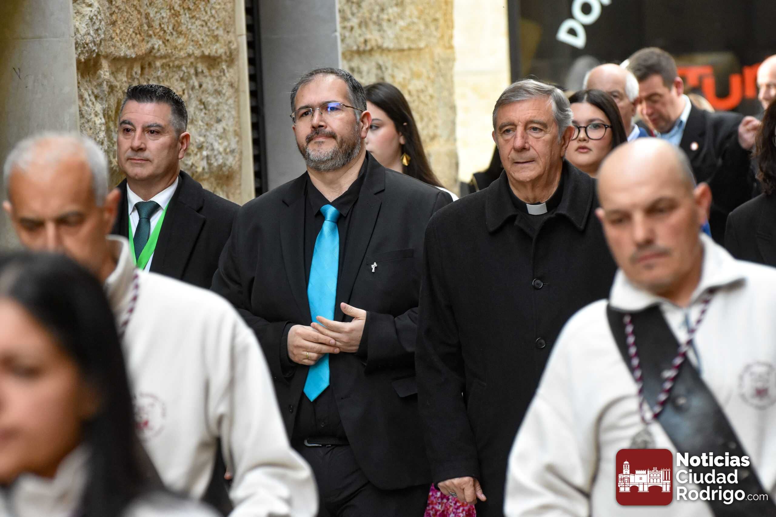 Con Nuestra Señora de la Soledad, se refirió al sufrimiento que hay detrás de los que tienen que huir, trasladarse del lugar donde nacieron, como María y José que también tuvieron que huir. El testimonio fue de una persona emigrante que vive en Ciudad Rodrigo, «no dejen de lado a Jesús, que quiere ser nuestra Fuerza». Dijo Daniel Mielgo, «que nuestras cofradías y parroquias sean las familias para los que vienen de lejos»