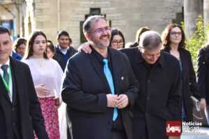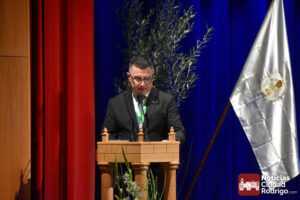 Seguidamente, Nino Rodríguez presentó al pregonero. Después ya fue el pregón de Daniel Mielgo, recordó sus inicios como monaguillo y su experiencia procesional siendo niño. Después, se detuvo en su misión como diácono y en su labor de evangelización junto a su esposa Teresa. Las cofradías tienen dimensiones comunes con el diaconado: es un ministerio de servicio. Las cofradías hacen que la Iglesia esté en salida, que esas esculturas salgan de los templos para llevar el mensaje de Amor y de Resurrección. En ese momento, habló del grupo El Manantial y de las representaciones de La Pasión, treinta años que para él han supuesto mucho.