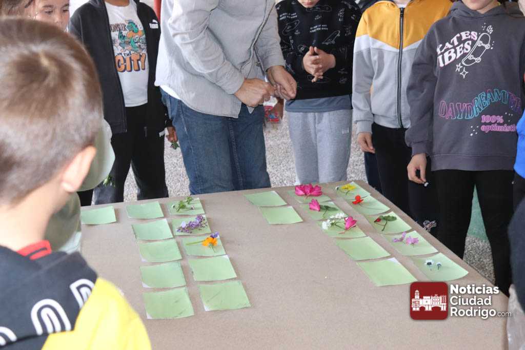 La actividad de «Fotos al sol», según nos comenta Raquel la profesora que coordina la actividad, es revelar fotos al sol. Sobre unas hojas impregnadas con dos líquidos químicos se ponen hojas y flores que previamente han recogido, se prensan y se ponen al sol. En cinco o diez minutos tienen un negativo de foto. Después se humedecen para que tengan más color. Es una forma de acercarse a una técnica que se utiliza desde hace más de 150 años, cómo escritores o botánicos que sólo podían utilizar la ilustración o el dibujo para describir una planta, con este invento podían reflejar la realidad de otra manera, «fotocopias de identidad». La Filmoteca de Castilla y León, que tiene su sede en Salamanca, colabora con esta actividad, proporcionando documentación y material.