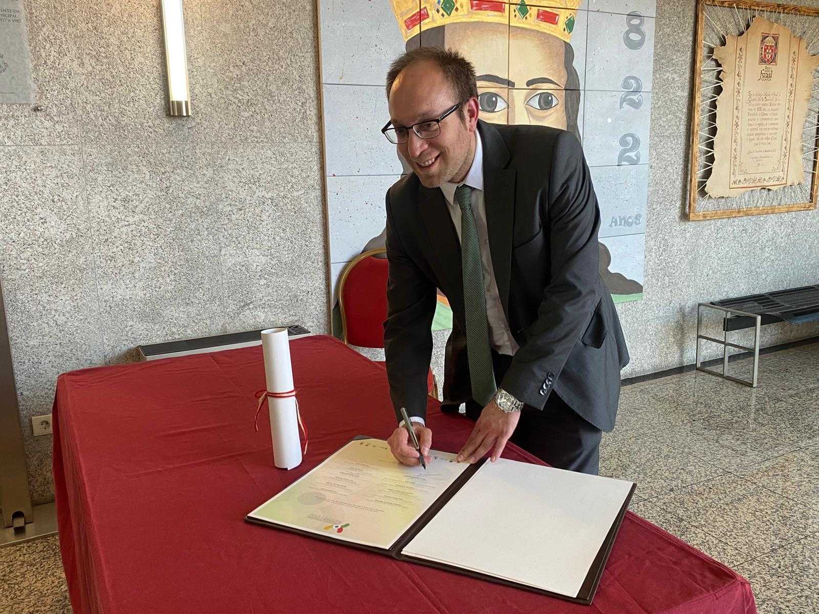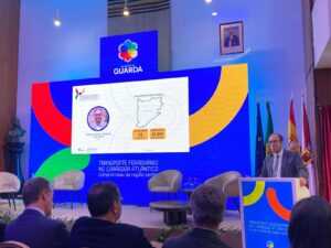 El Ayuntamiento de Ciudad Rodrigo, representado por el Alcalde, Marcos Iglesias, y la delegada municipal, Joana Veloso, participaron en calidad de firmantes de la Declaración Regional Conjunta para el Desarrollo del Transporte Ferroviario en el Corredor Atlántico Europeo en el Tramo Ibérico. Una declaración que se firmó durante la jornada de miércoles en Guarda y en la que participaron diferentes responsables institucionales de diferentes localidades de la provincia de Salamanca y Portugal.