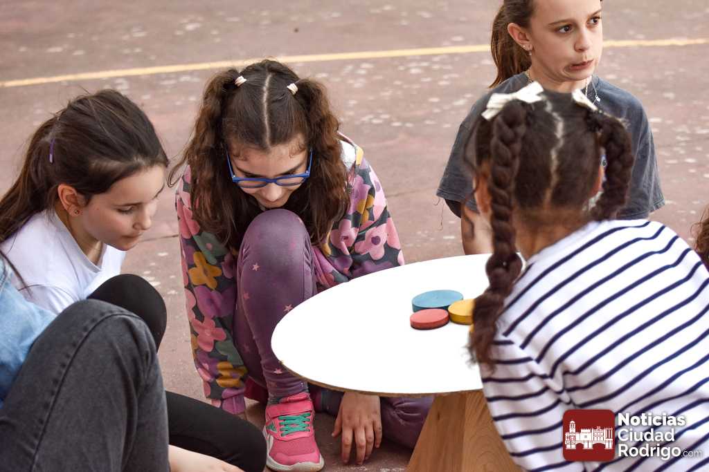 Los escolares del San Francisco disfrutaron de una mañana de juegos tradicionales en el patio del centro. Desde el juego de la rana hasta la comba, las canicas o los zancos, los niños y niñas del centro conocieron y pusieron en práctica estos divertimentos habituales de otras épocas (algunas relativamente recientes), todo ello dentro del marco de la Semana Cultural que finaliza mañana viernes 11.