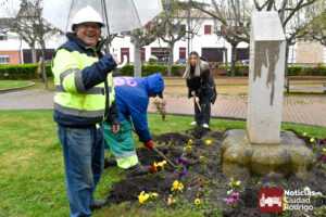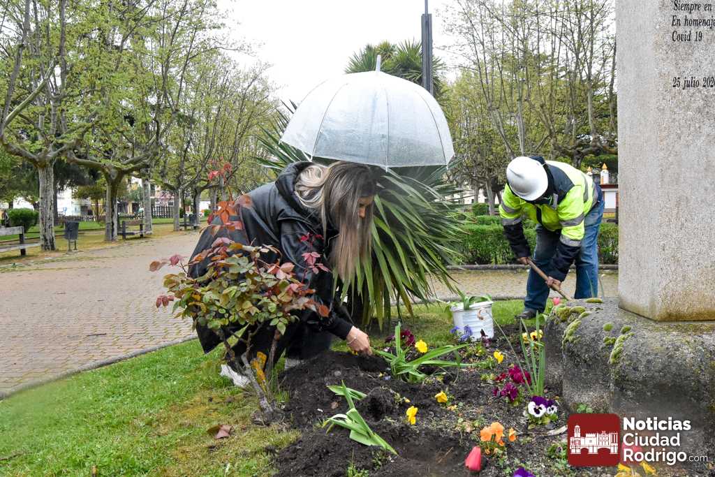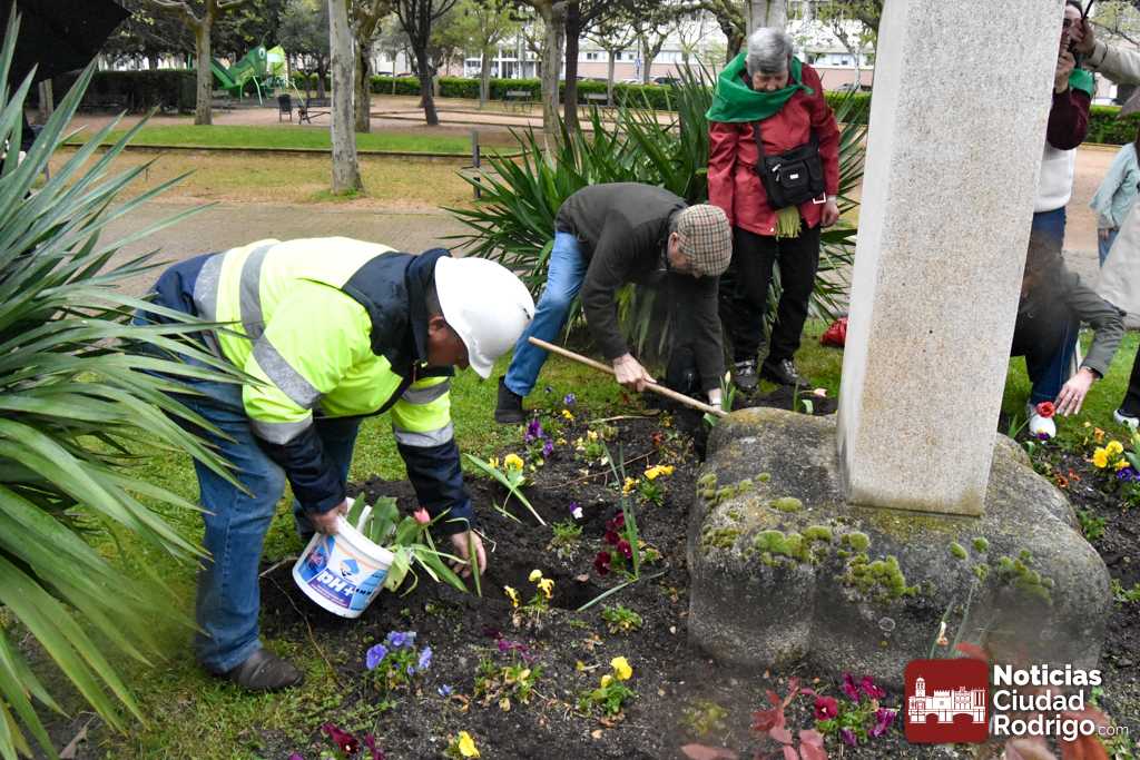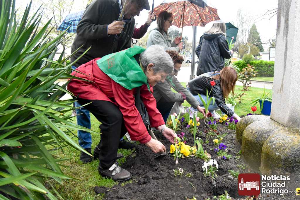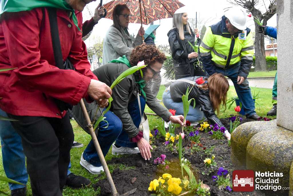 Los miembros de la sede en Ciudad Rodrigo de la Asociación Parkinson Salamanca, junto con los concejales José Manuel Jerez y Joana Veloso, reivindicaron el Día Mundial del Parkinson, que se conmemora hoy, 11 de abril, con una plantación de tulipanes en el Parque de la Glorieta, flor símbolo mundial de la lucha contra tal enfermedad.
