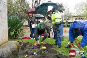 La Asociación Parkinson Salamanca reivindica su día mundial con una plantación de tulipanes en La Glorieta