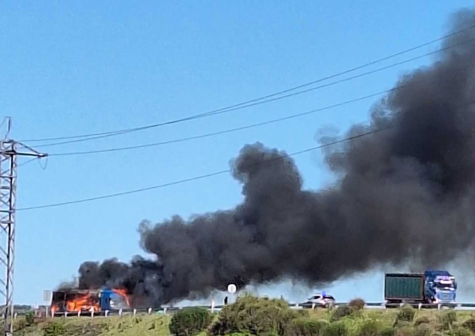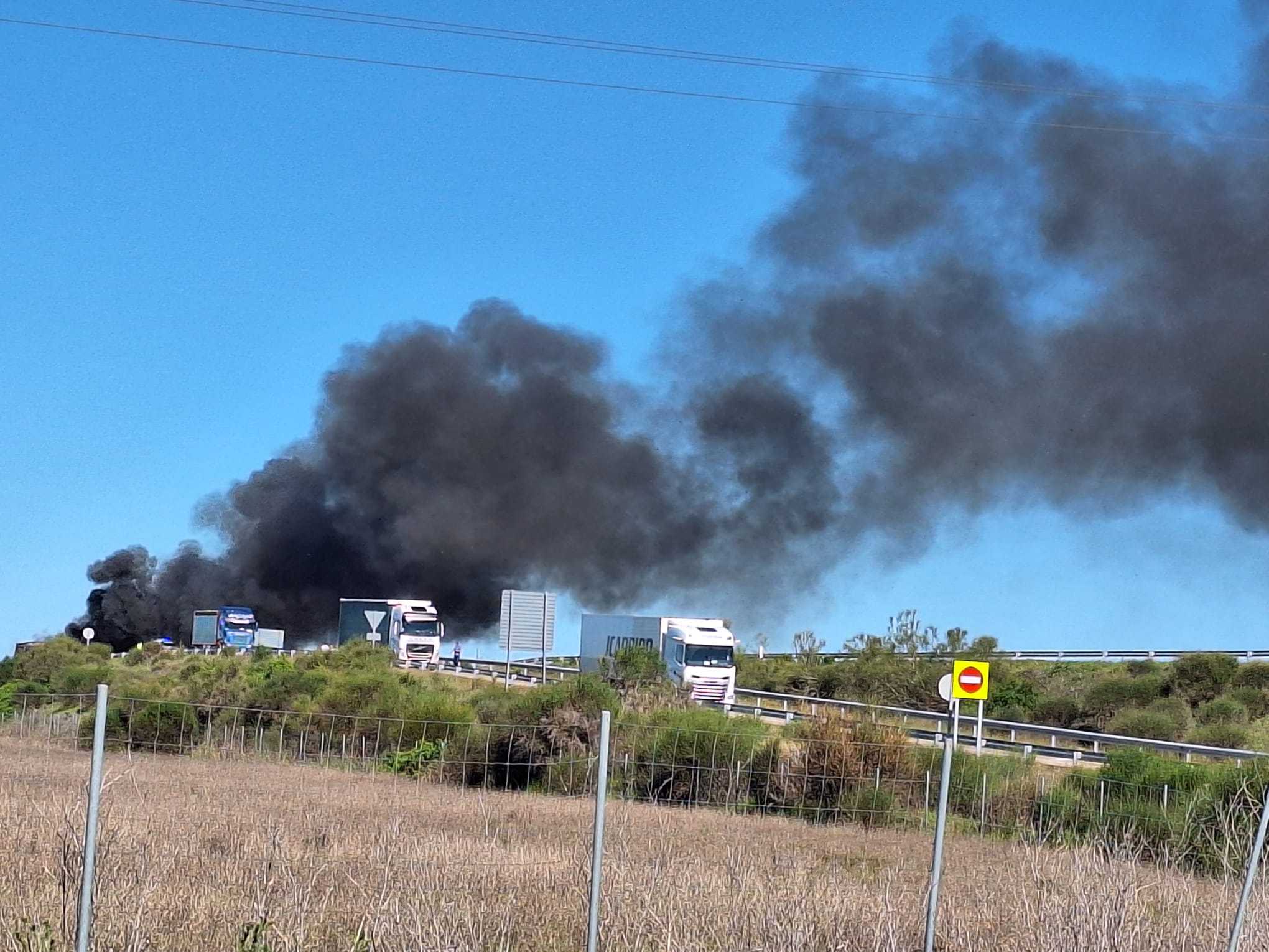 Incendio de un camión en la A62 a la altura de San Muñoz
