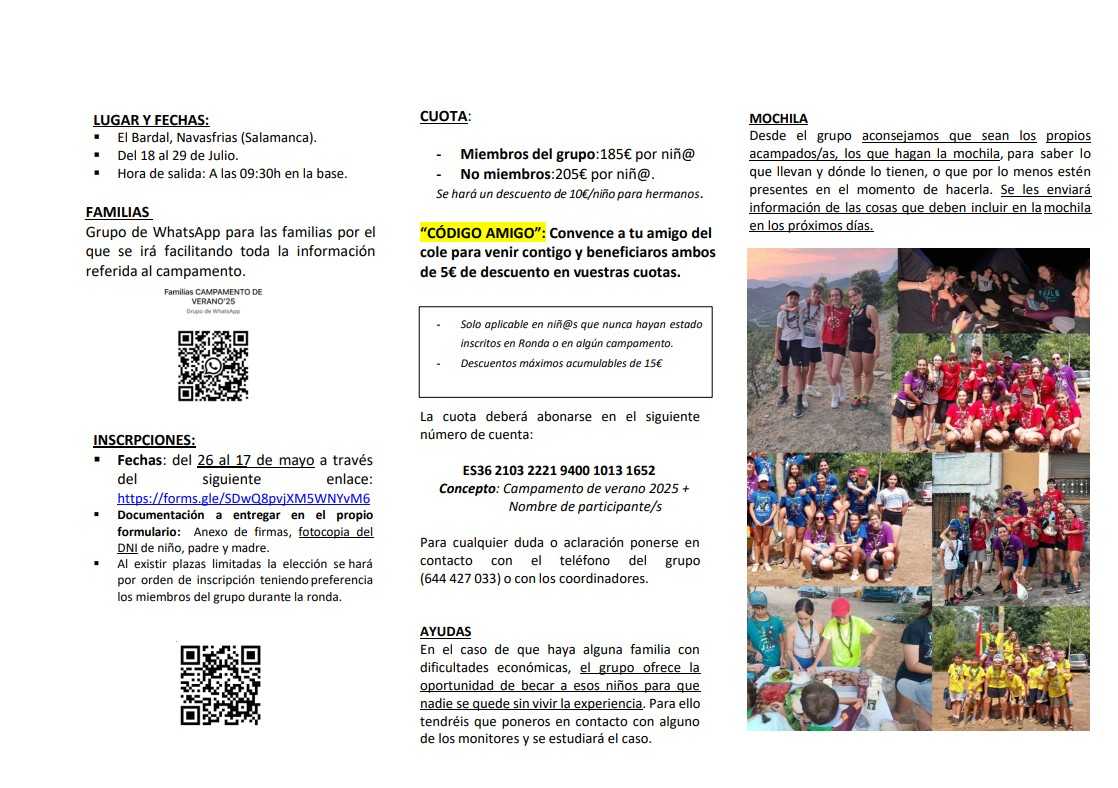 Este campamento está dirigido a niños y jóvenes de entre 7 y 17 años de edad, pudiéndose formalizar las inscripciones hasta el 16 de mayo, con un precio de 185€ por niño si se es miembro de los scouts y de 205€ por niño si no se es miembro (Hay descuentos para hermanos, amigos e incluso posibilidad de beca) a través de un formulario online (PINCHA AQUÍ).