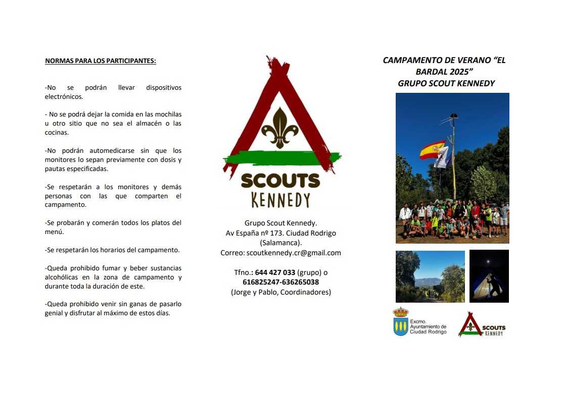 Tras la reunión informativa celebrada durante la pasada Feria del Chirimichi, el Grupo Scout Kennedy ha abierto las inscripciones para la edición del 2025 de su Campamento de Verano, que se llevará a cabo en la zona de camping del área recreativa El Bardal (Navasfrías) del 18 al 27 de julio.