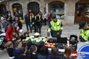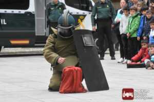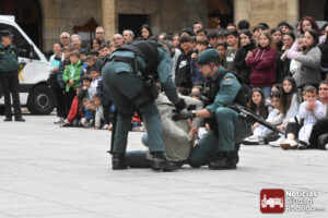 La exhibición, que presenciaron también algunos transeúntes, se basó en una pequeña muestra de diferentes elementos y acciones que en ocasiones lleva a cabo la Guardia Civil. Tales como una exhibición con perros, uso de dron y la representación de una detención con varias patrullas y una posterior recogida de una mochila con elementos químicos, todo ello seguido con gran atención por parte de los escolares; quiénes, posteriormente, pudieron ver algunos objetos que utiliza la Guardia Civil de primera mano, tales como cascos, escudos, porras, motocicletas, sensores de calor y drones, así como acariciar a los perros, que fue lo que más atención llamó.
