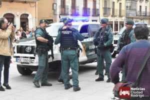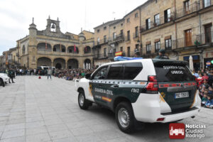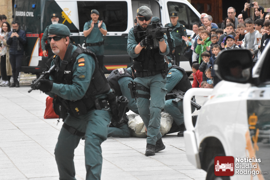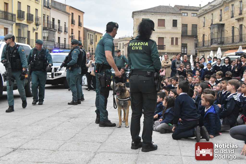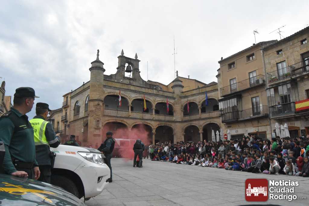 La Plaza Mayor de Ciudad Rodrigo se vio «sorprendida» durante esta mañana por la ocupación de la misma por varios vehículos de la Guardia Civil, no es que sucediera algo, si no que se estaba preparando la realización de una exhibición a cargo de este cuerpo benemérito para escolares de todos los centros educativos de Ciudad Rodrigo.