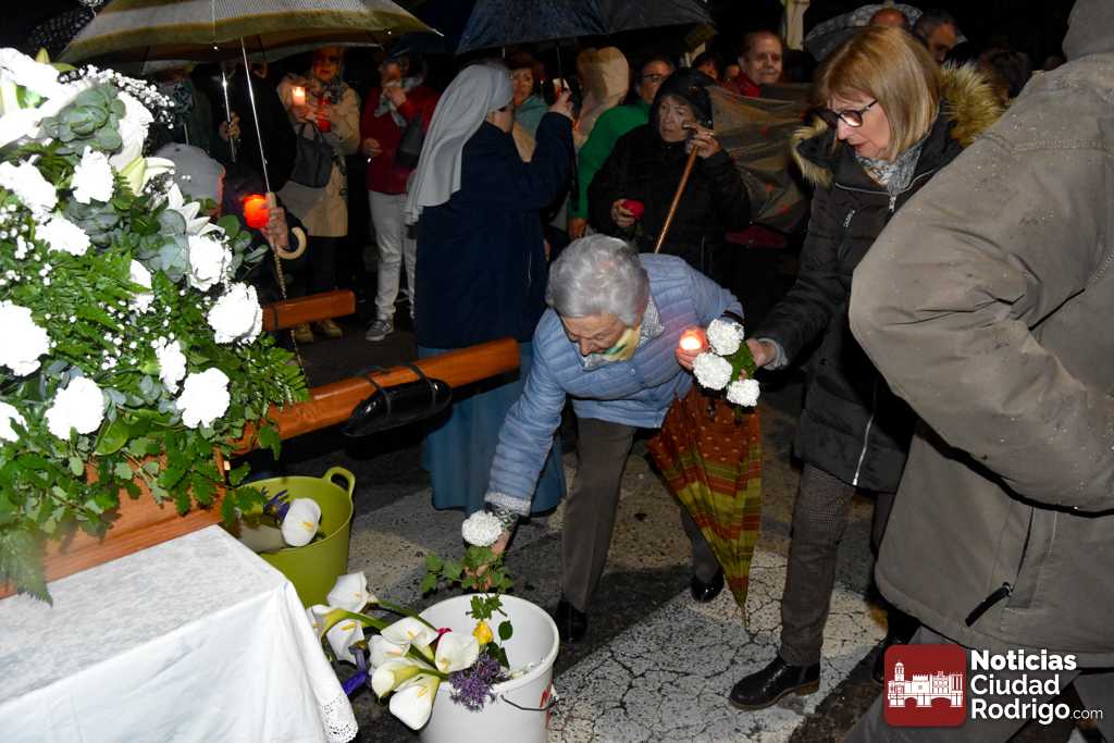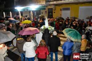 A pesar de la intermitente lluvia, la procesión se pudo realizar completa, incluyendo ofrenda floral, salve y chocolatada