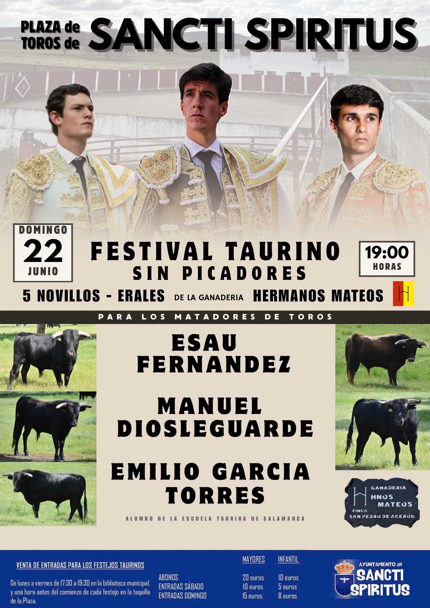 Esaú Fernández, Manuel Diosleguarde y Emilio García Torres en el festival taurino de Sancti Spíritus