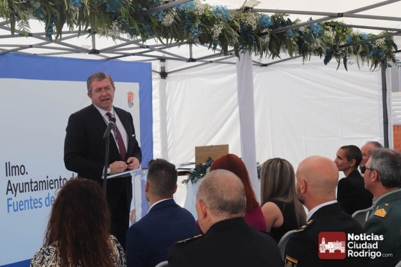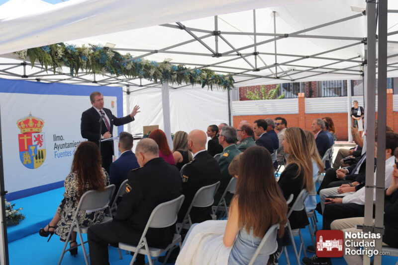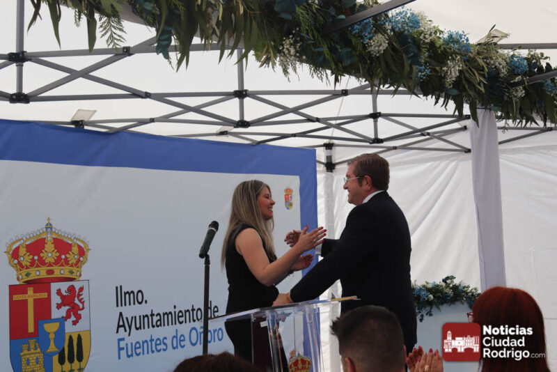 Laura Vicente, alcaldesa de Fuentes de Oñoro, ha realizado una intervención donde ha hablado a título personal en un primer momento del galardonado, destacando su buen hacer como alcalde y como persona, y posteriormente ha leído el acta donde el Ayuntamiento de Fuentes de Oñoro por unanimidad acordaba su nombramiento como Hijo Predilecto. Posteriormente, Isidoro Alanís ha recibido la medalla de Hijo Predilecto, una placa y también un bastón de mando de alcaldía.