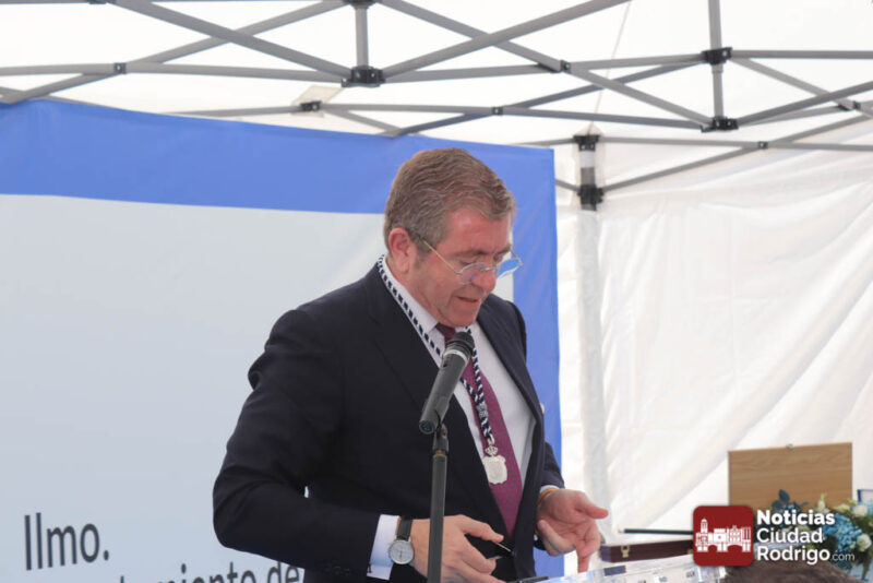 De forma emocionada y repleta de referencias nostálgicas, ha recibido Isidoro Alanís el título de Hijo Predilecto de Fuentes de Oñoro, ante la presencia de numeroso público en la carpa instalada al lado del Ayuntamiento de la localidad. Entre los presentes, amigos y familiares del galardonado, la Corporación Municipal, así como el capitán de la Guardia Civil de la Compañía de Ciudad Rodrigo Pablo Javier Gatell y el inspector jefe de la Policía Nacional en Fuentes de Oñoro, así como los alcaldes de Villar de Argañán, Castillejo Martín Viejo y Medina del Campo, y el director de la Fundación Siega Verde.