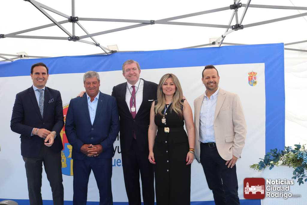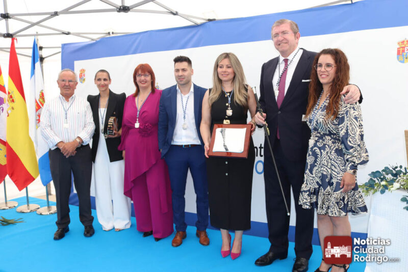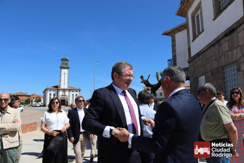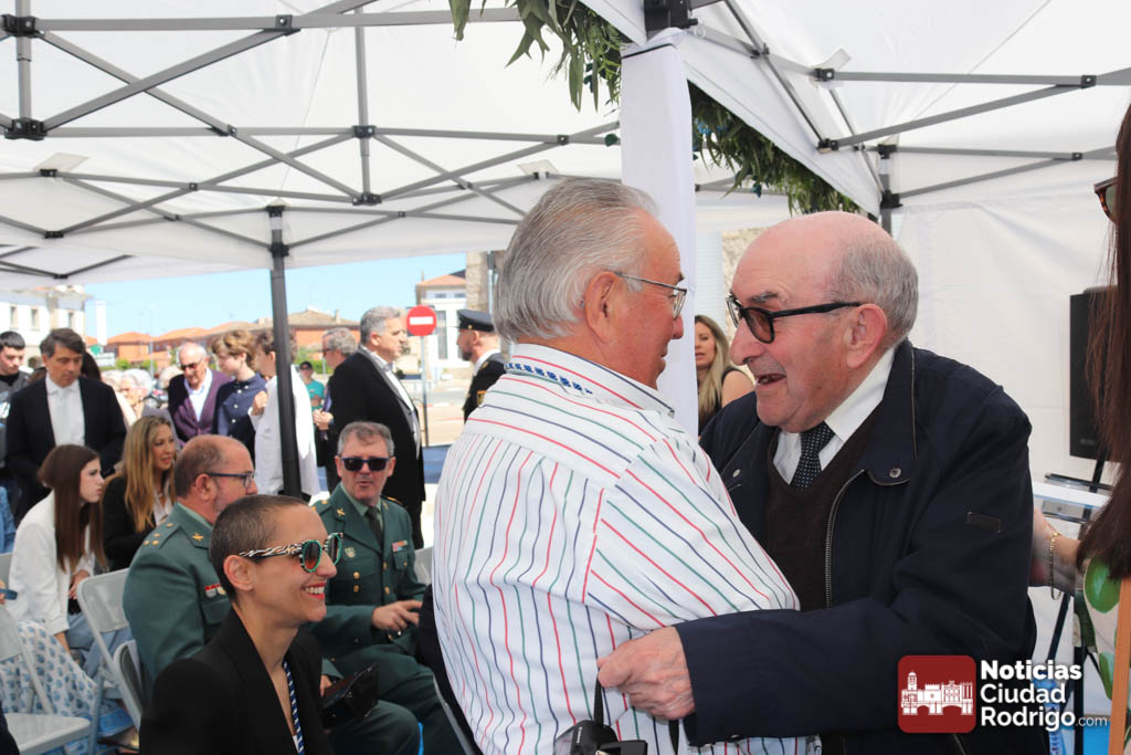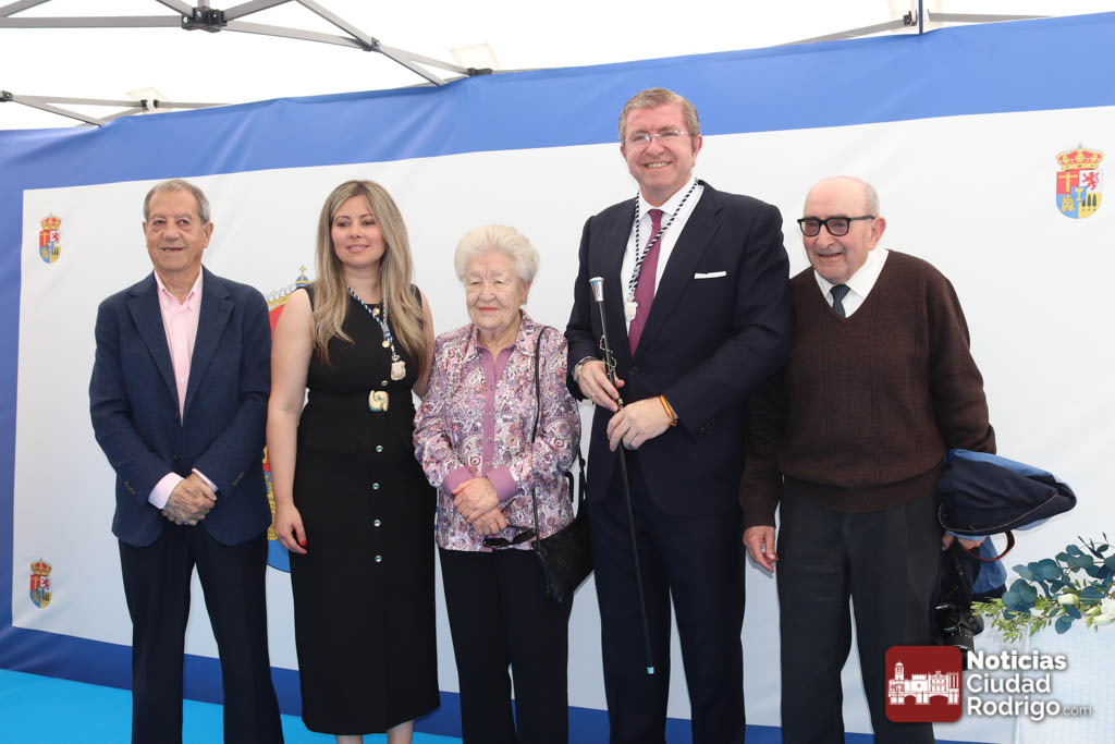 Después, el nuevo hijo predilecto se hizo fotografías con su familia, corporación municipal, alcaldes de la Fundación Siega Verde y con algunos de los nueve hijos predilectos y adoptivos que tiene la localidad, en concreto con Estanislao Barrios, Eva Hernández y Generoso Martín Pastor.
