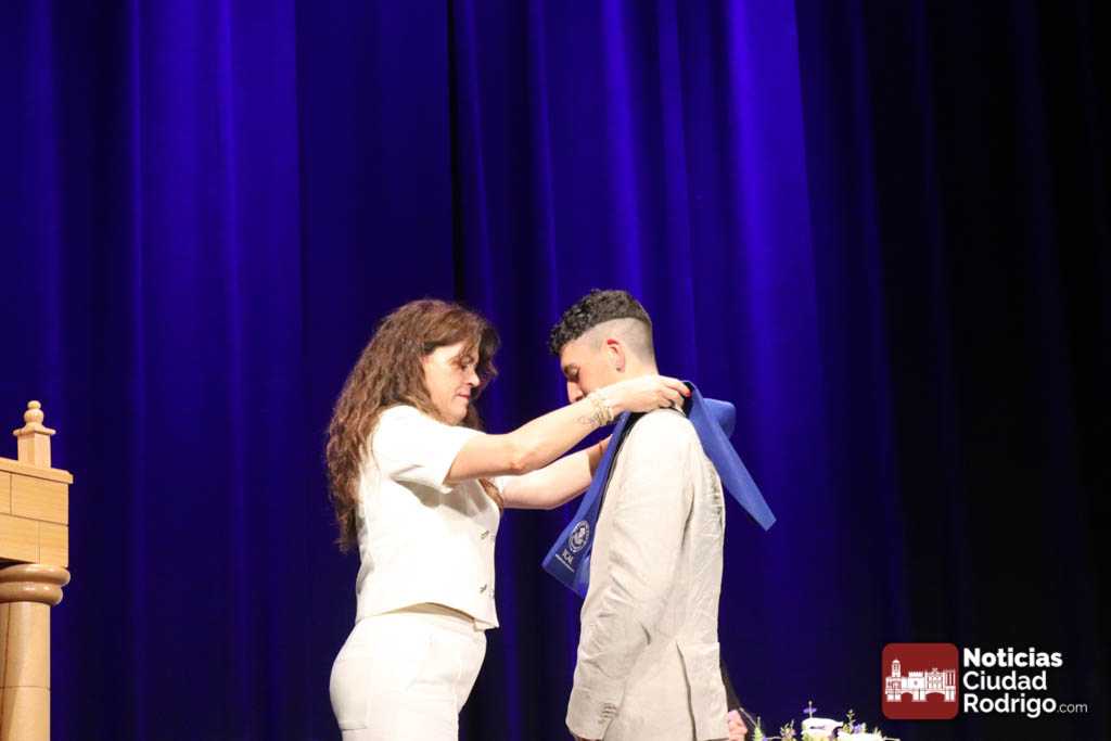 Cerca de 200 asistentes acudieron a celebrar la graduación de los 64 alumnos y alumnas que han concluido con éxito el itinerario formativo de estos dos ciclos de grado medio de la familia profesional de sanidad durante el curso 2024/25.