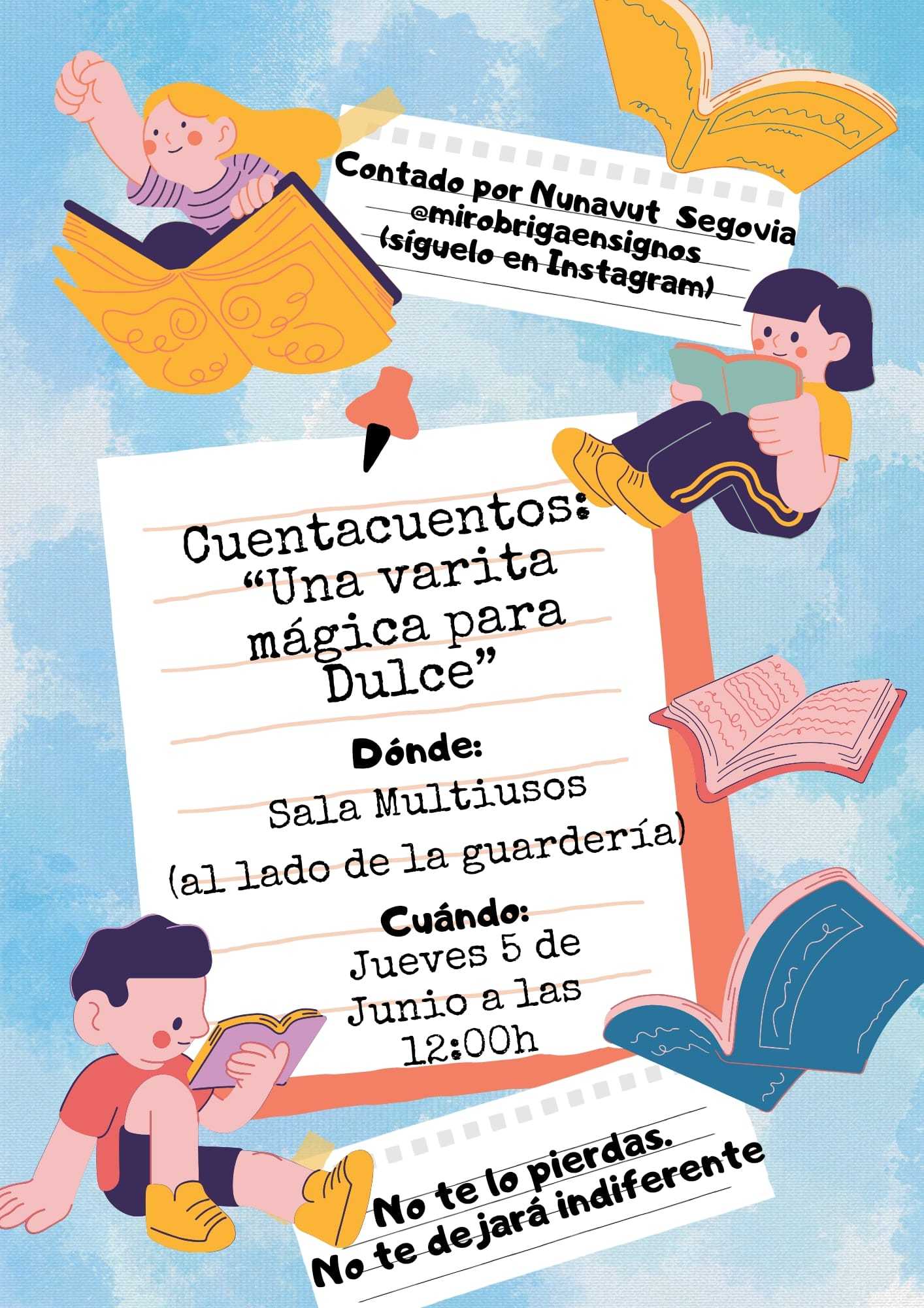El cuento «Una varita mágica para Dulce» se llevará a cabo en la sala Multiusos, junto a la guardería, a las 12:00 h