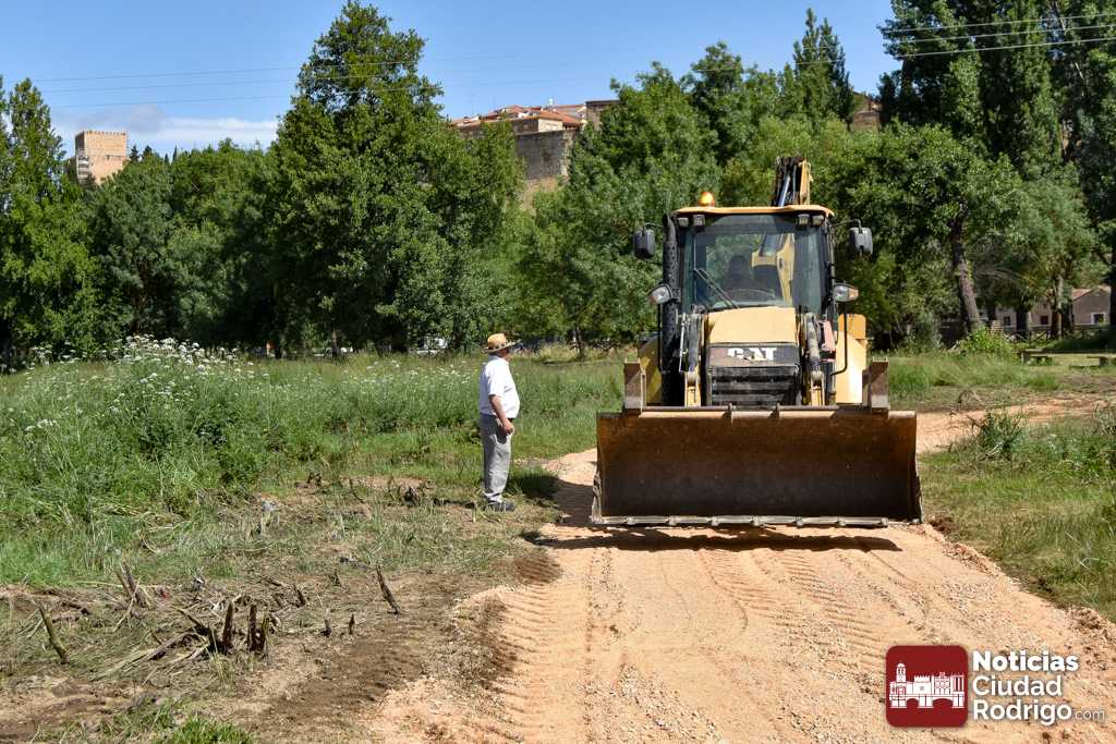 Estas labores, supervisadas de primera mano por el Concejal de Rio, Alamedas y Senderos del Ayuntamiento de Ciudad Rodrigo, José Manuel Jerez, han consistido en el esparcimiento de tierra en el sendero que recorre la zona de esparcimiento de La Pesquera al lugar donde se ubicará la pasarela la semana que viene con una excavadora.