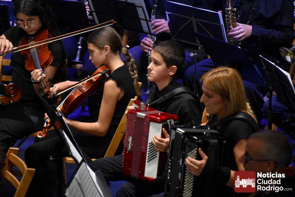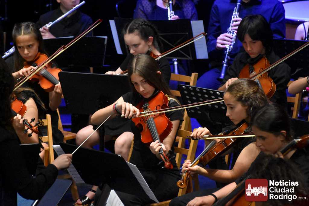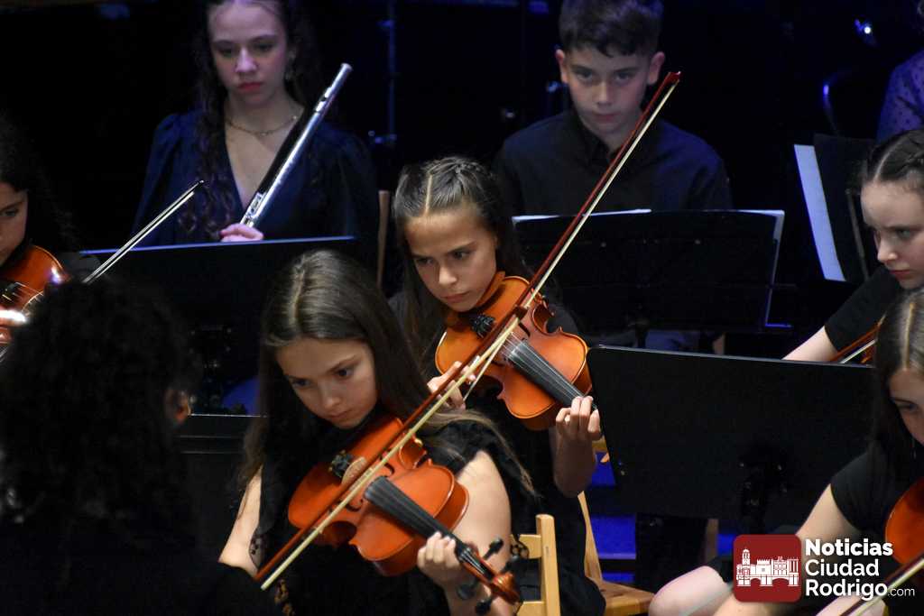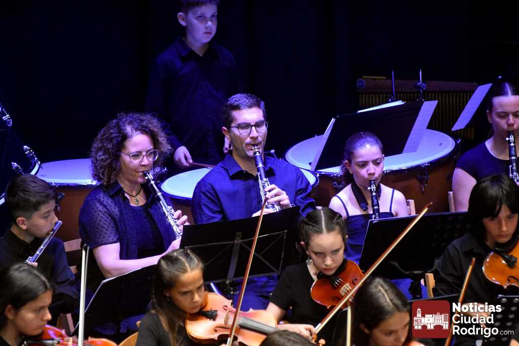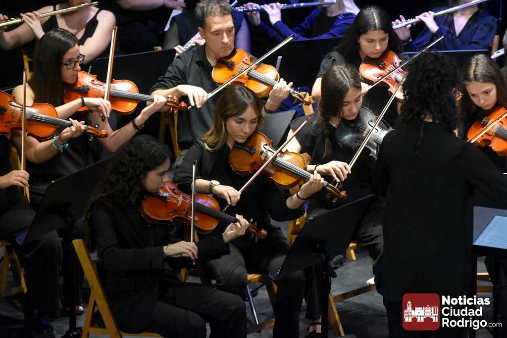 La Orquesta Sinfónica de Ciudad Rodrigo, perteneciente a la Escuela Municipal de Música «Juan Esquivel de Barahona», cerró el curso 2025/26 con un brillante concierto de música clásica y cinematográfica en el Teatro Nuevo «Fernando Arrabal». El ágora cultural mirobrigense presentó tres cuartos de entrada para una cuidada interpretación musical dirigida por Raquel Romero Toro.