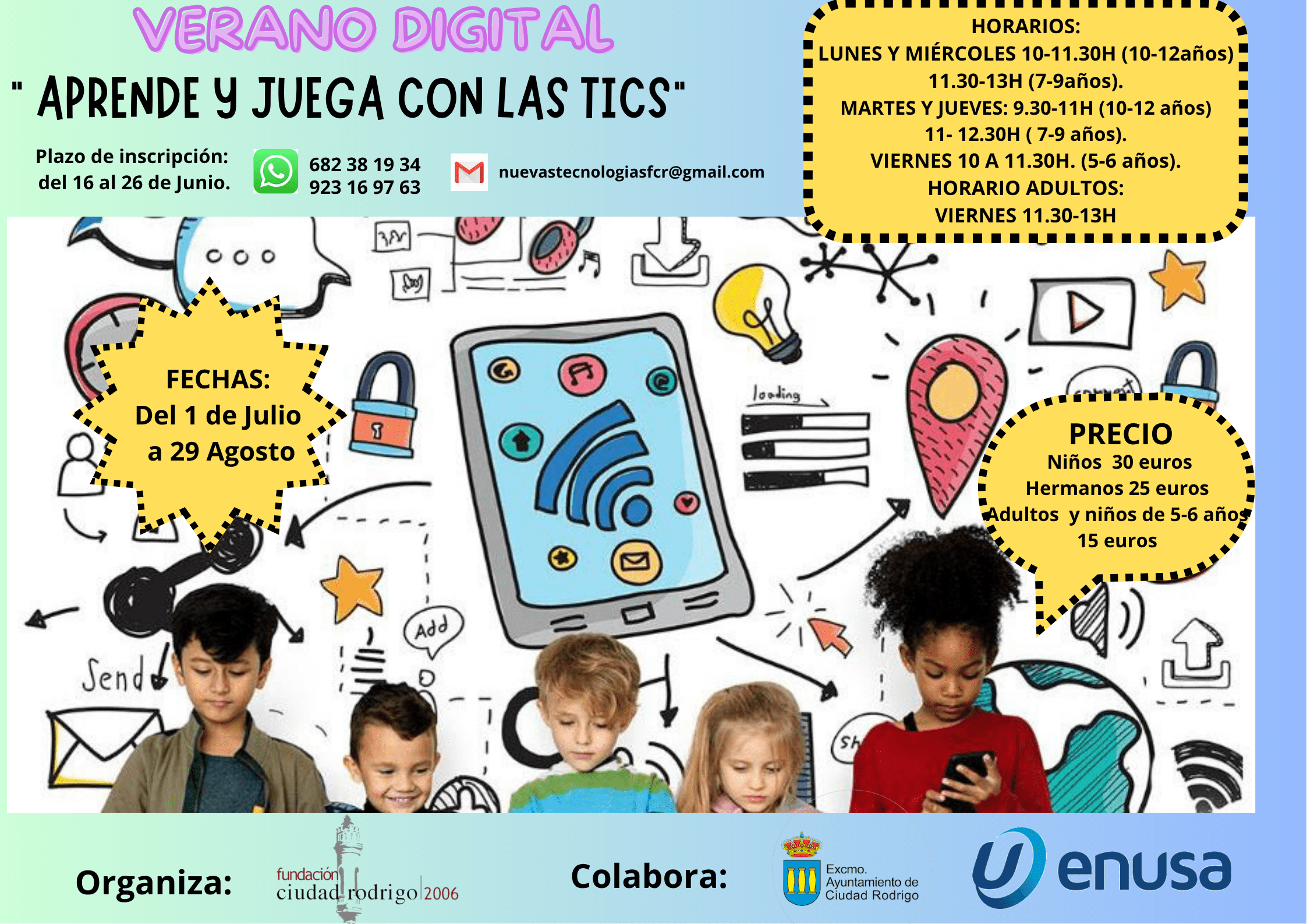 La Fundación Ciudad Rodrigo, con la colaboración del Ayuntamiento de Ciudad Rodrigo y de ENUSA, pone en marcha el programa “Verano digital. Aprende y juega con las TICs”.