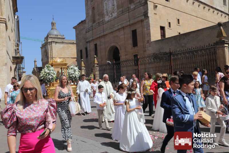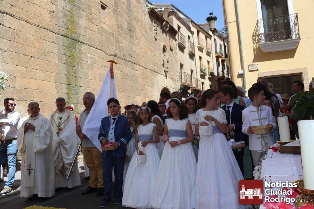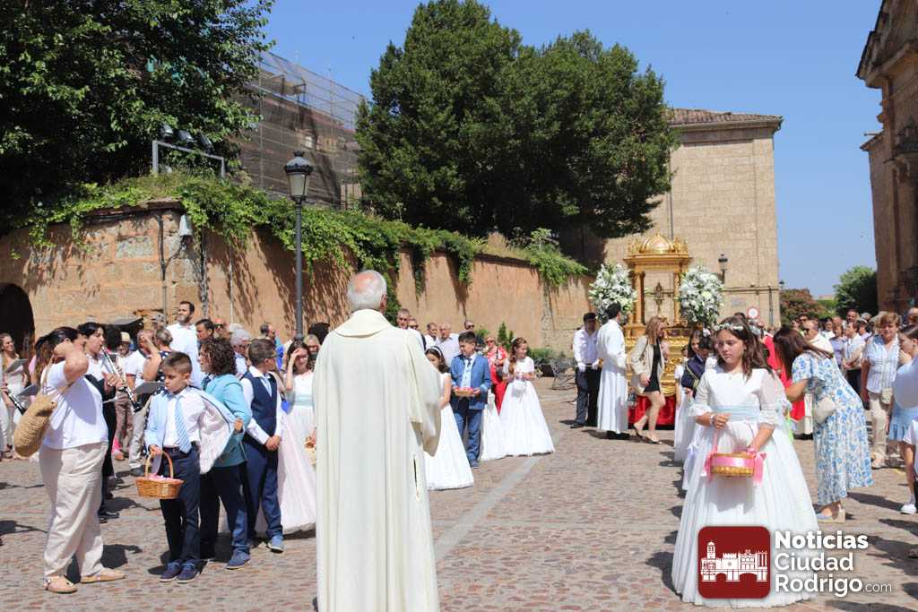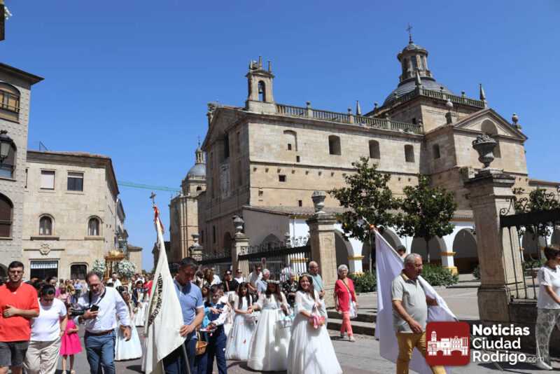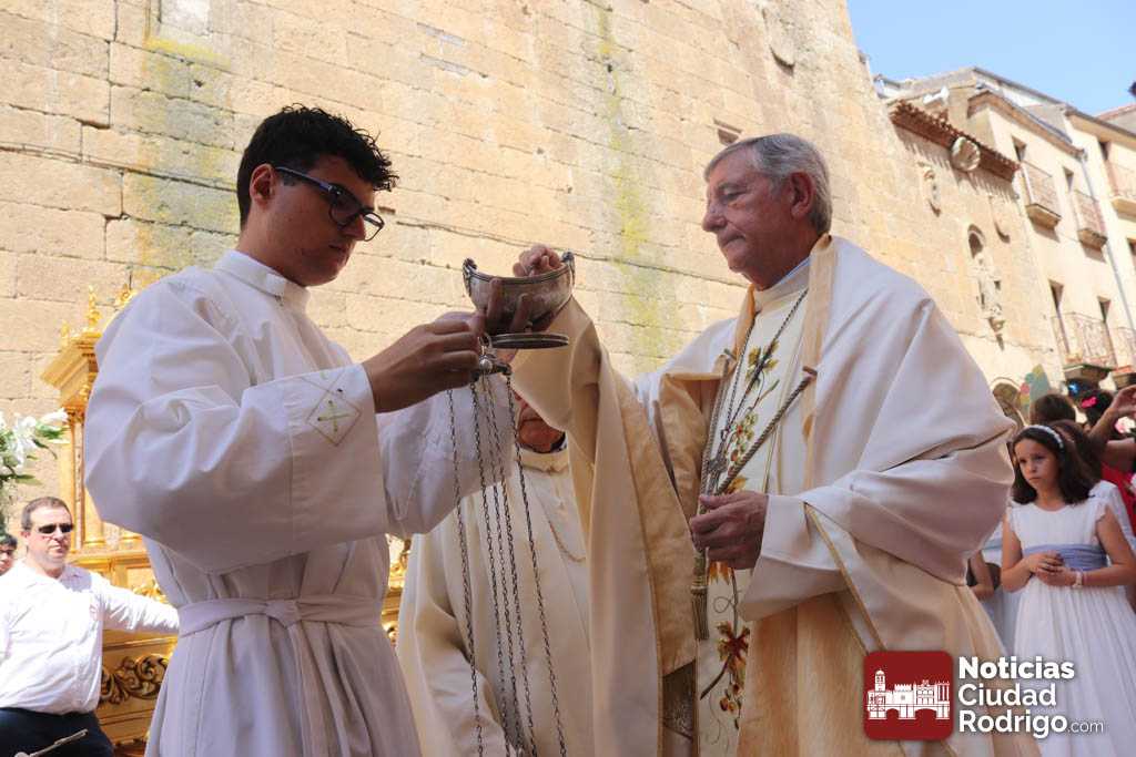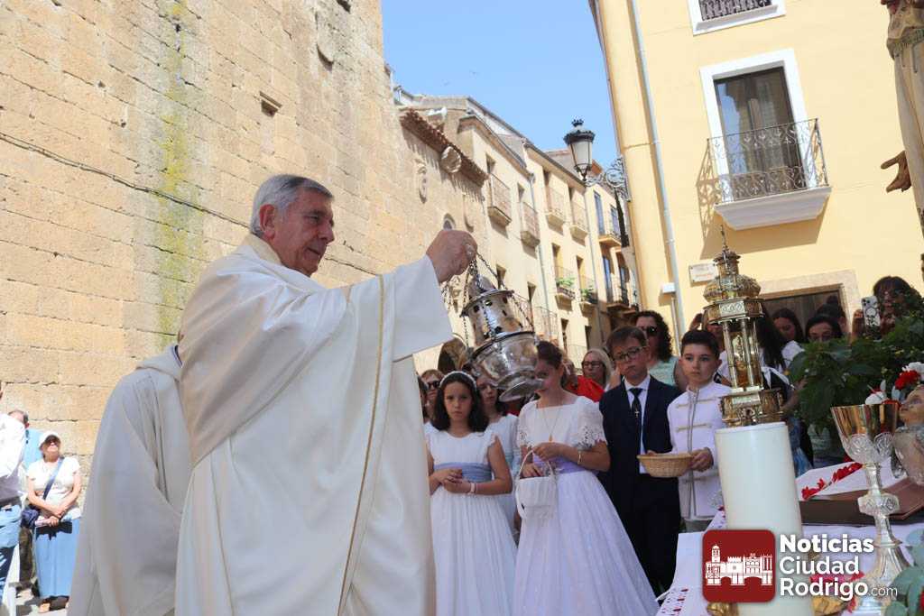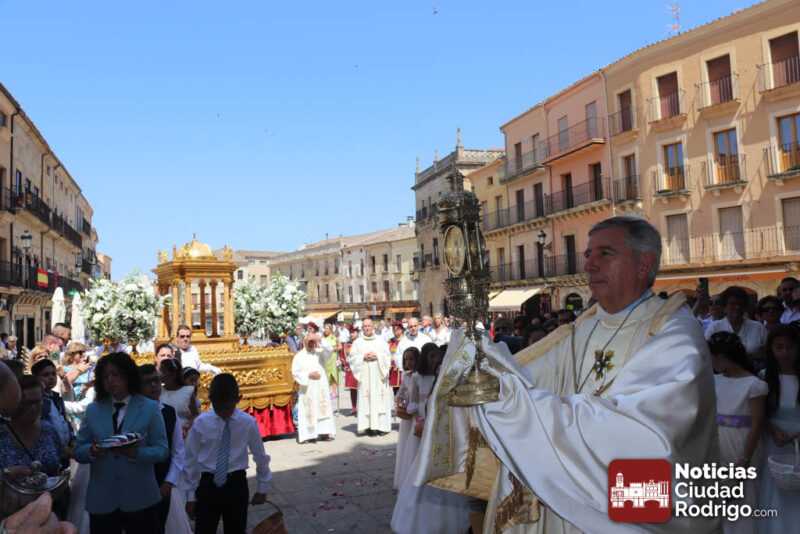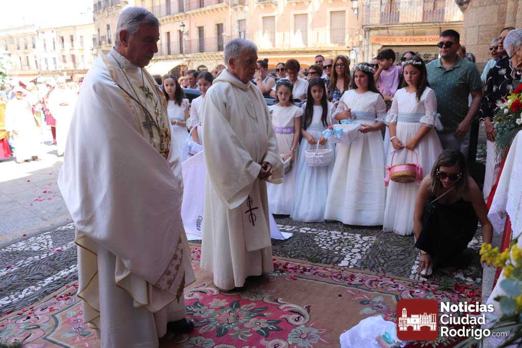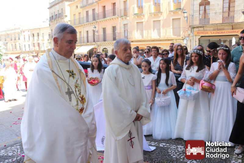 Ciudad Rodrigo ha contado en la mañana de hoy con una celebración especial de Corpus Christi, con una Eucaristía presidida por el obispo Mons. José Luis Retana en la Catedral. En ella, han participado de forma activa los miembros de la asociación Adoración Eucarística, así como también ha estado presente Cáritas, por ser el Día de la Caridad. De hecho, la directora de Cáritas Diocesana Ciudad Rodrigo, Mar Manzano ha realizado la acción de gracias final, dirigiendo unas palabras especiales a los niños y niñas de Primera Comunión y explicando la labor, el sentir y hacer de la entidad que representa, dando gracias a todas las personas que apoyan este trabajo cotidiano en favor de los más desfavorecidos.