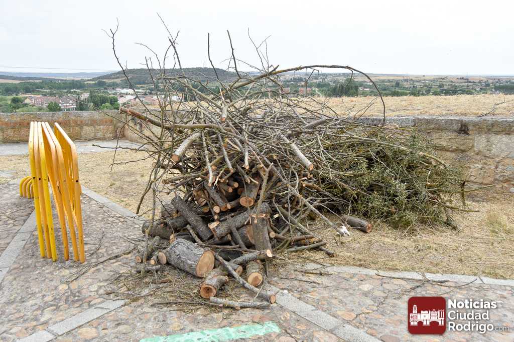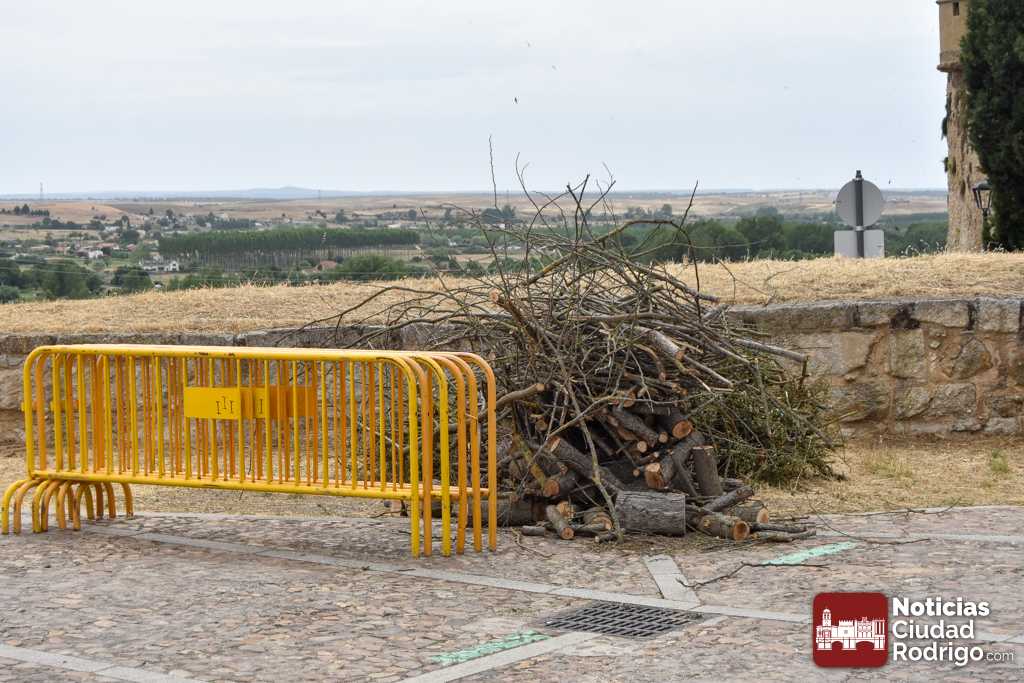 La Puerta de Santiago ya luce con los elementos necesarios para la realización esta noche (23:00 h) de una nueva edición de la hoguera de San Juan, que contará, junto con la fogata de una actuación del Taller Intergeneracional que dirige Sergio Cardoso. Estos elementos que se encuentran ahora en la entrada a la puerta están compuestos por un círculo de arena, donde irá la fogata que se prenderá con las ramas recogidas durante esta mañana en la zona del rio; también se ha situado el vallado que rodeará el espacio en el que se desarrolle la actuación y la hoguera.