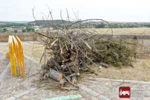 Todo preparado en la Puerta de Santiago para la Hoguera de San Juan de esta noche