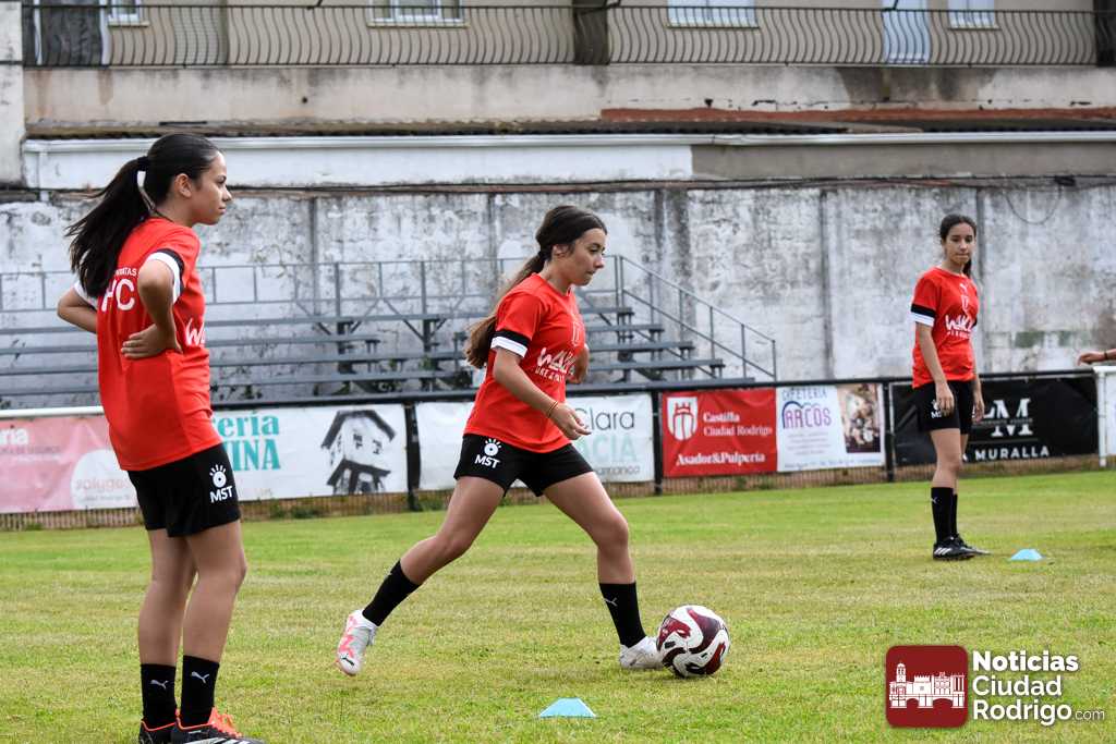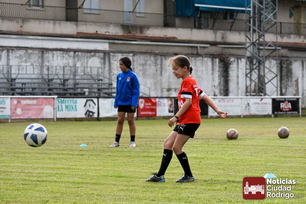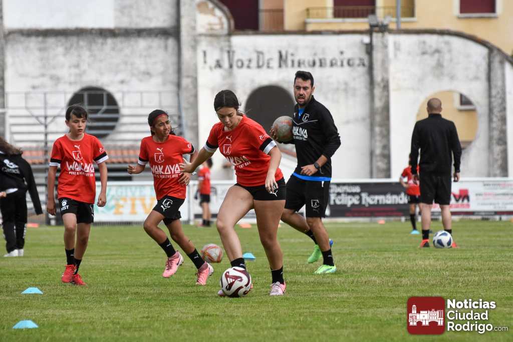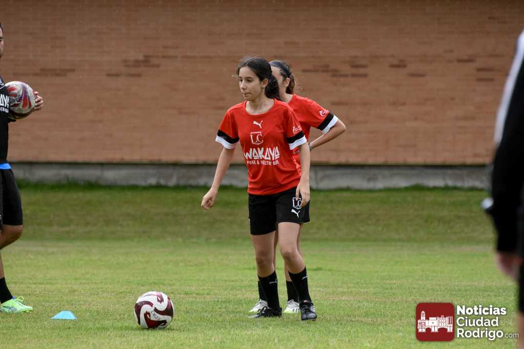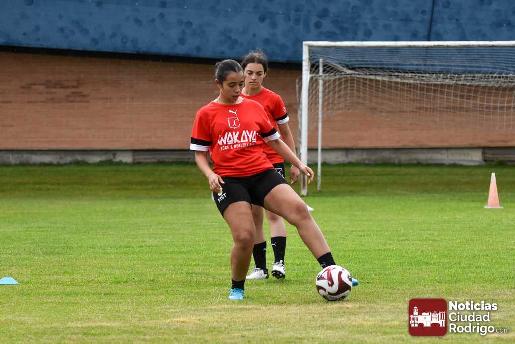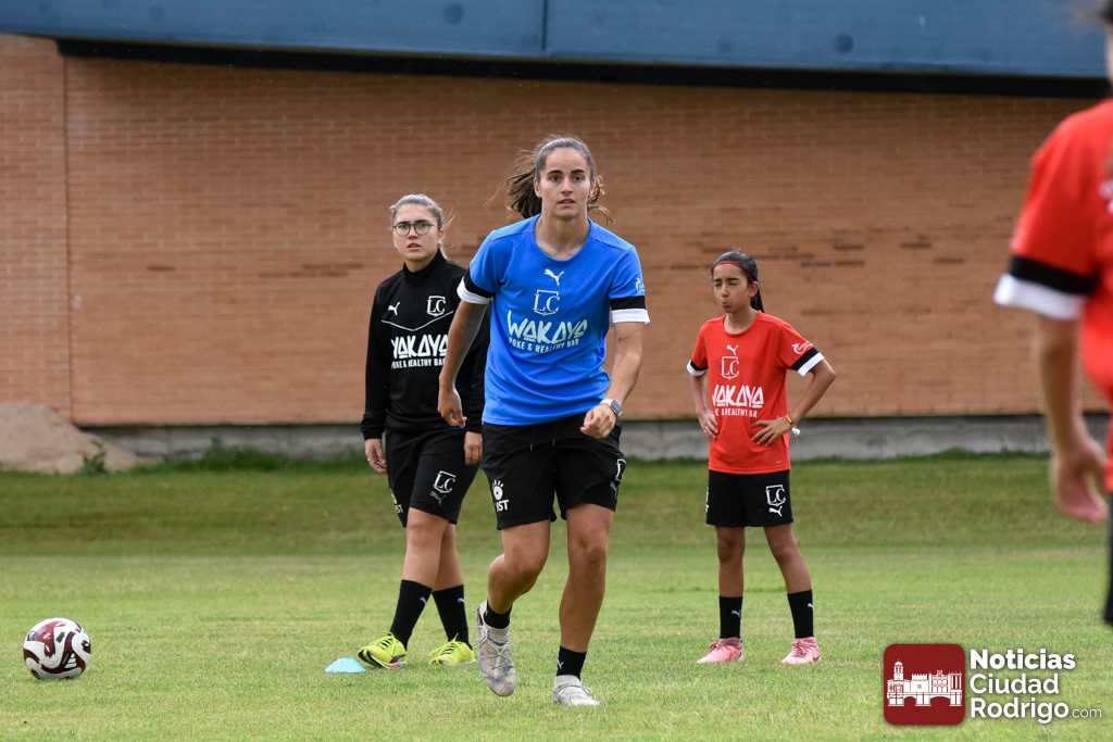 Esta primera toma de contacto en Ciudad Rodrigo, que se desarrollará hasta el 26 de junio, ha contado con 30 niñas, muchas de ellas provenientes de la cantera del Ciudad Rodrigo CF, que han realizado diferentes ejercicios de tecnificación a pesar de que la lluvia ha sido una «indeseable» compañera a lo largo de la mañana, así mismo, el campus ha contado con la presencia de la futbolista madrileña Claudia Iglesias «Bicho», quién ha impartido una charla y ha compartido la mañana con ellas.