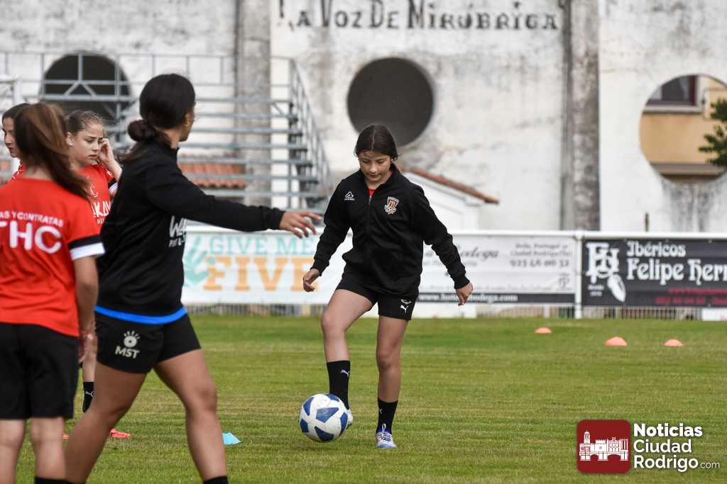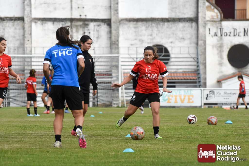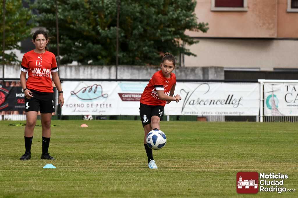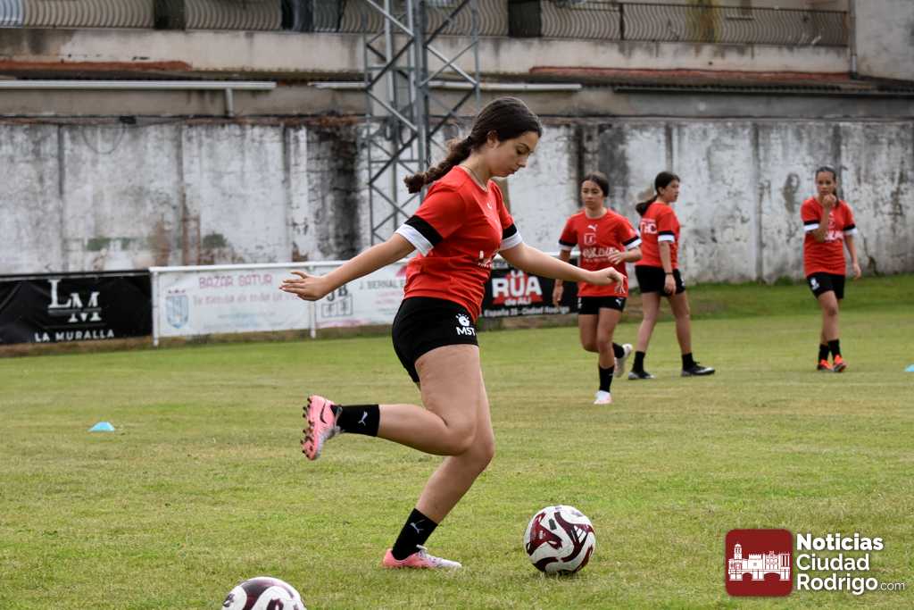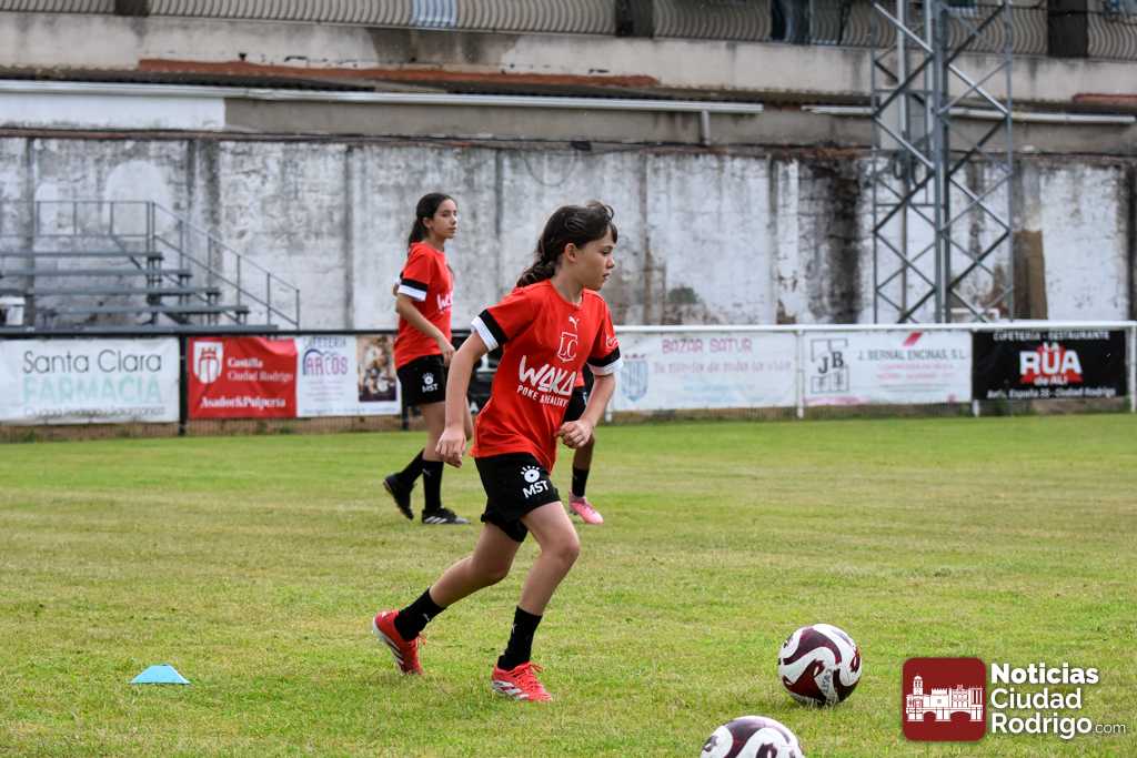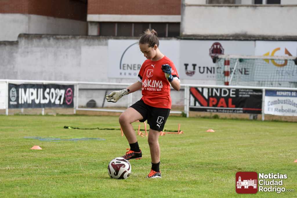 Esta primera toma de contacto en Ciudad Rodrigo, que se desarrollará hasta el 26 de junio, ha contado con 30 niñas, muchas de ellas provenientes de la cantera del Ciudad Rodrigo CF, que han realizado diferentes ejercicios de tecnificación a pesar de que la lluvia ha sido una «indeseable» compañera a lo largo de la mañana, así mismo, el campus ha contado con la presencia de la futbolista madrileña Claudia Iglesias «Bicho», quién ha impartido una charla y ha compartido la mañana con ellas.