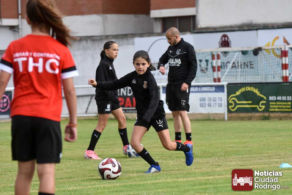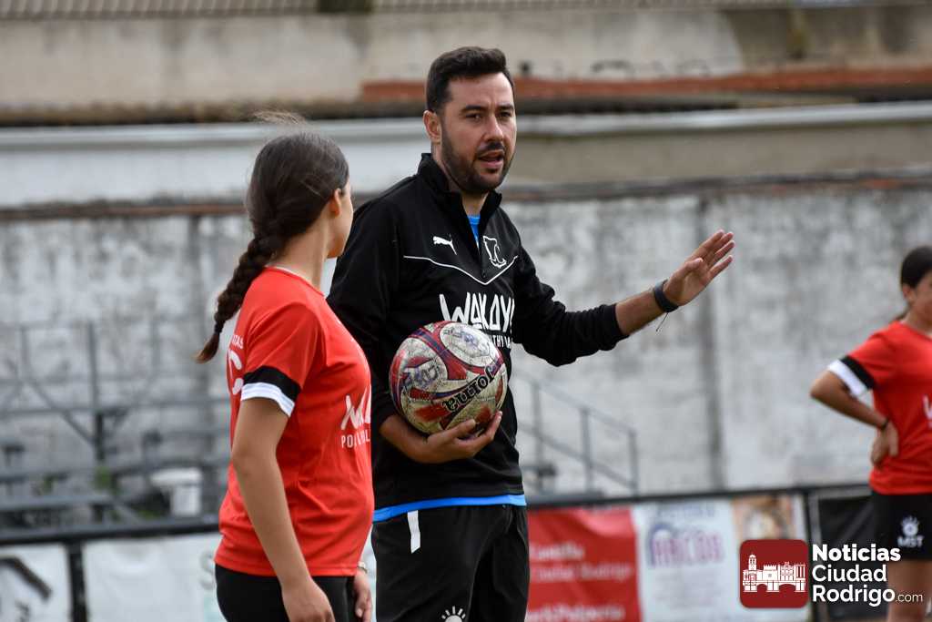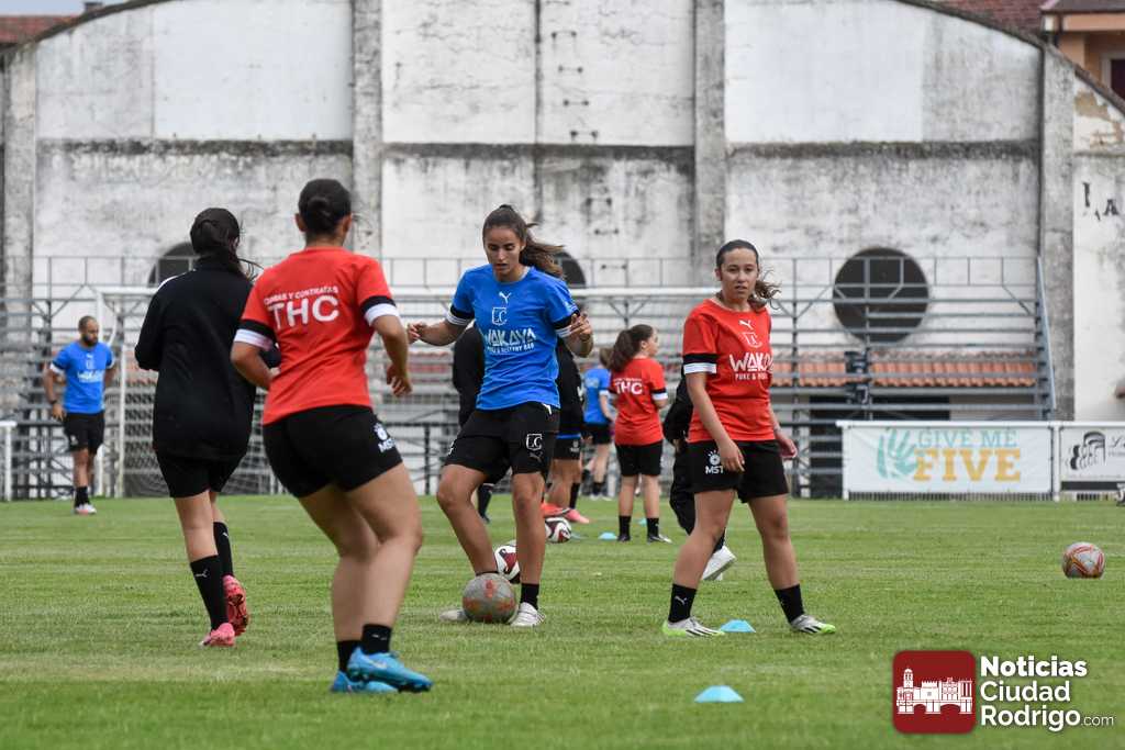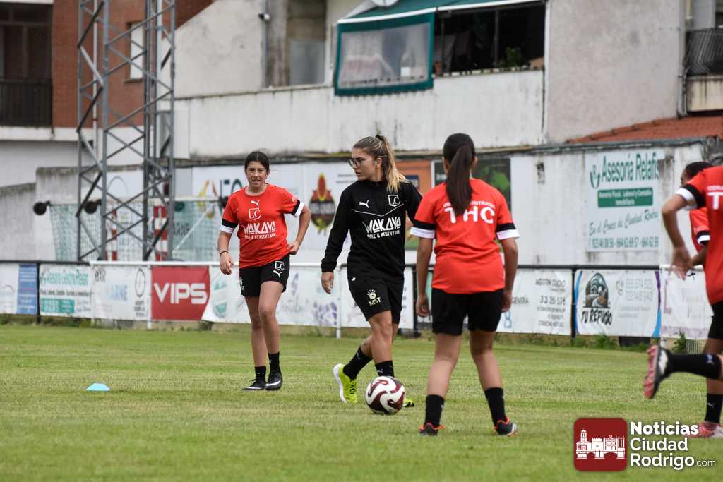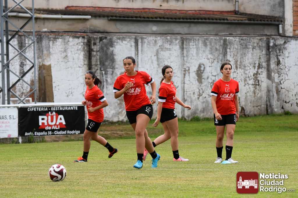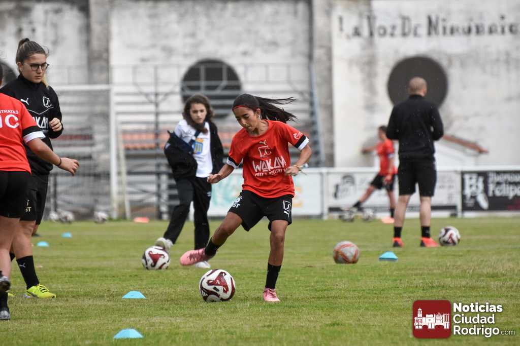 Esta primera toma de contacto en Ciudad Rodrigo, que se desarrollará hasta el 26 de junio, ha contado con 30 niñas, muchas de ellas provenientes de la cantera del Ciudad Rodrigo CF, que han realizado diferentes ejercicios de tecnificación a pesar de que la lluvia ha sido una «indeseable» compañera a lo largo de la mañana, así mismo, el campus ha contado con la presencia de la futbolista madrileña Claudia Iglesias «Bicho», quién ha impartido una charla y ha compartido la mañana con ellas.