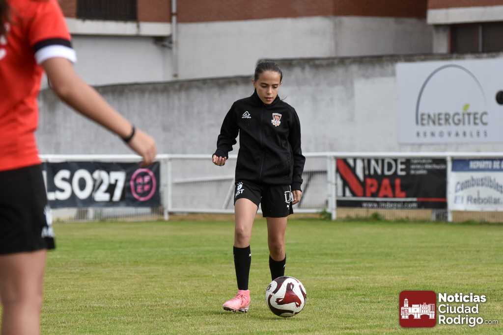 Por su parte, Carmen Álvarez también se ha mostrado muy contenta por la acogida que ha tenido en Ciudad Rodrigo, así como el nivel que traen: «A mí me ha sorprendido ver el nivel y ver a tantas niñas, al final cuando jugábamos nosotras no había tantas niñas, éramos tres jugando en el Ciudad Rodrigo CF y ver a tantas niñas con esa ilusión y ganas sorprende». En torno a volver a tocar balón en el Francisco Mateos, la mirobrigense comentó que es algo «muy emocionante», pues «me fui siendo muy pequeña, aquí partidos no he vuelto a jugar aunque si que me lo dejan para entrenar de vez en cuando en Pre-Temporada, pero muy guay, muy ilusionante». Finalizando su intervención emplazándonos a todos para la edición del año que viene: «va a salir bien, va a gustar, la idea es seguir más años e ir viendo lo que podemos ir mejorando».
