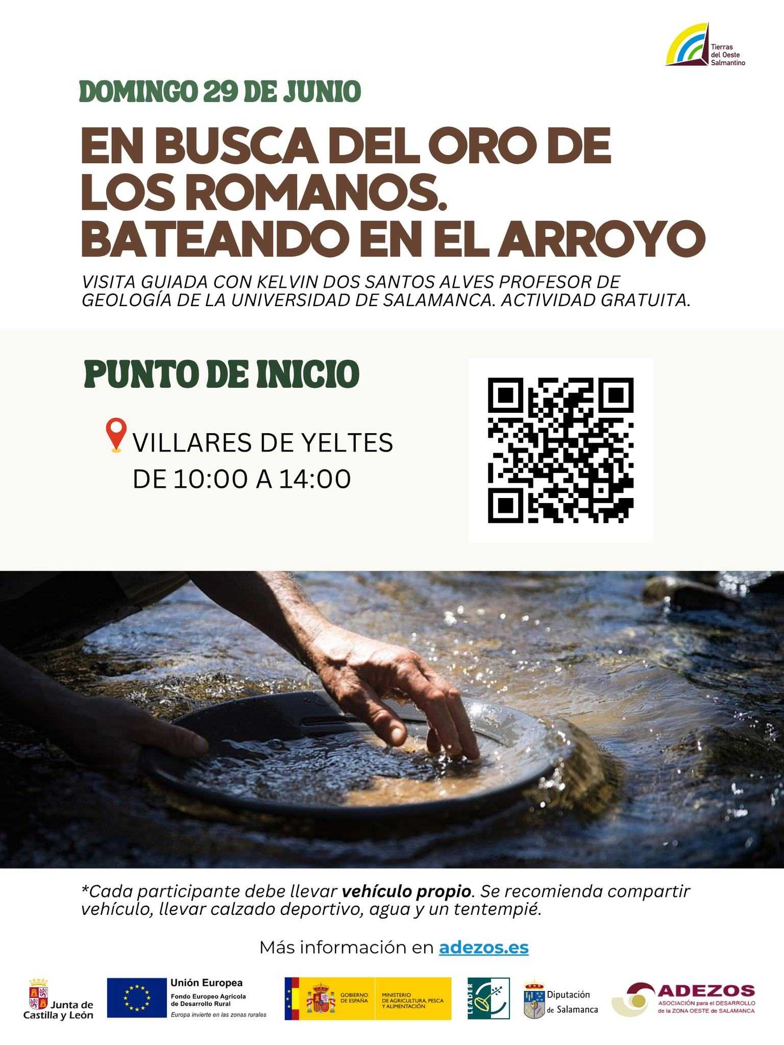 ADEZOS organiza una visita guiada titulada «En busca del oro de los romanos. Bateando en el arroyo»el próximo domingo 29 de junio. Tiene un carácter gratuito y el punto de partida es el río Yeltes a su paso por Villares de Yeltes ( AQUÍ )