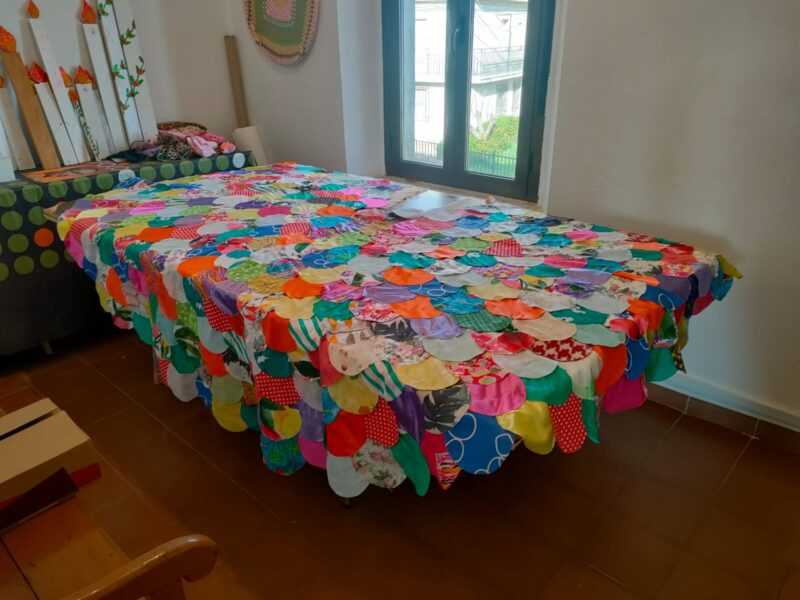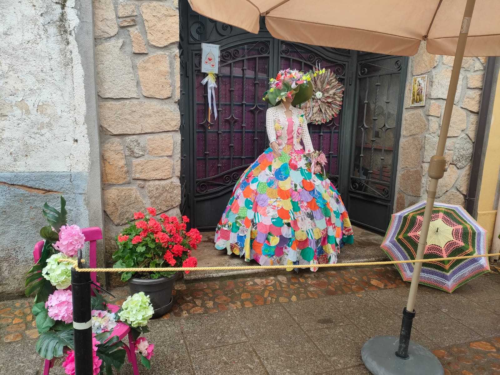 Una obra realizada con material reciclado: lana, flores, pamela… Y todo ha sido elaborado «con mucho amor», como afirma Pilar Duque, «para darle color y visibilidad a esta fiesta».
