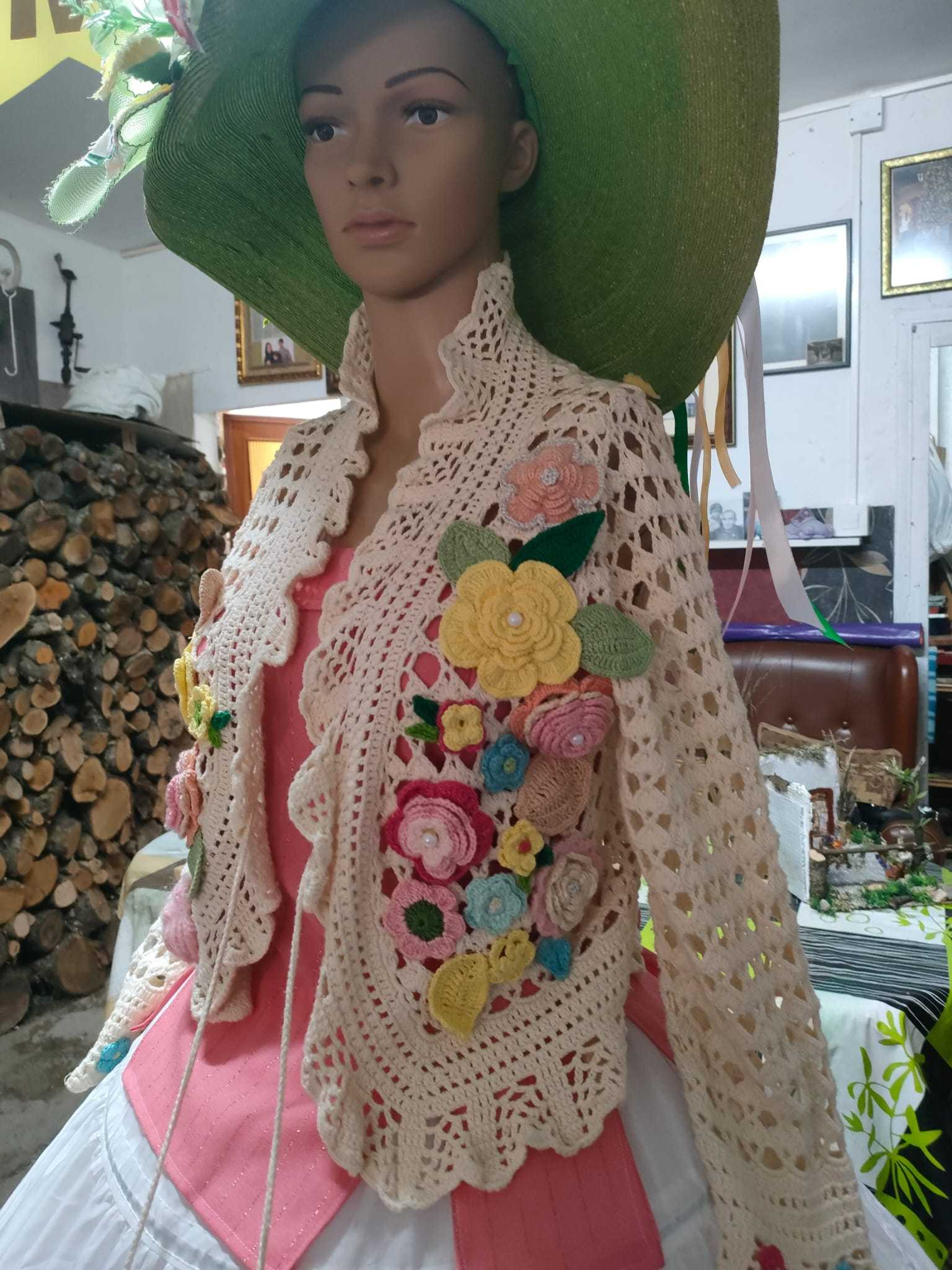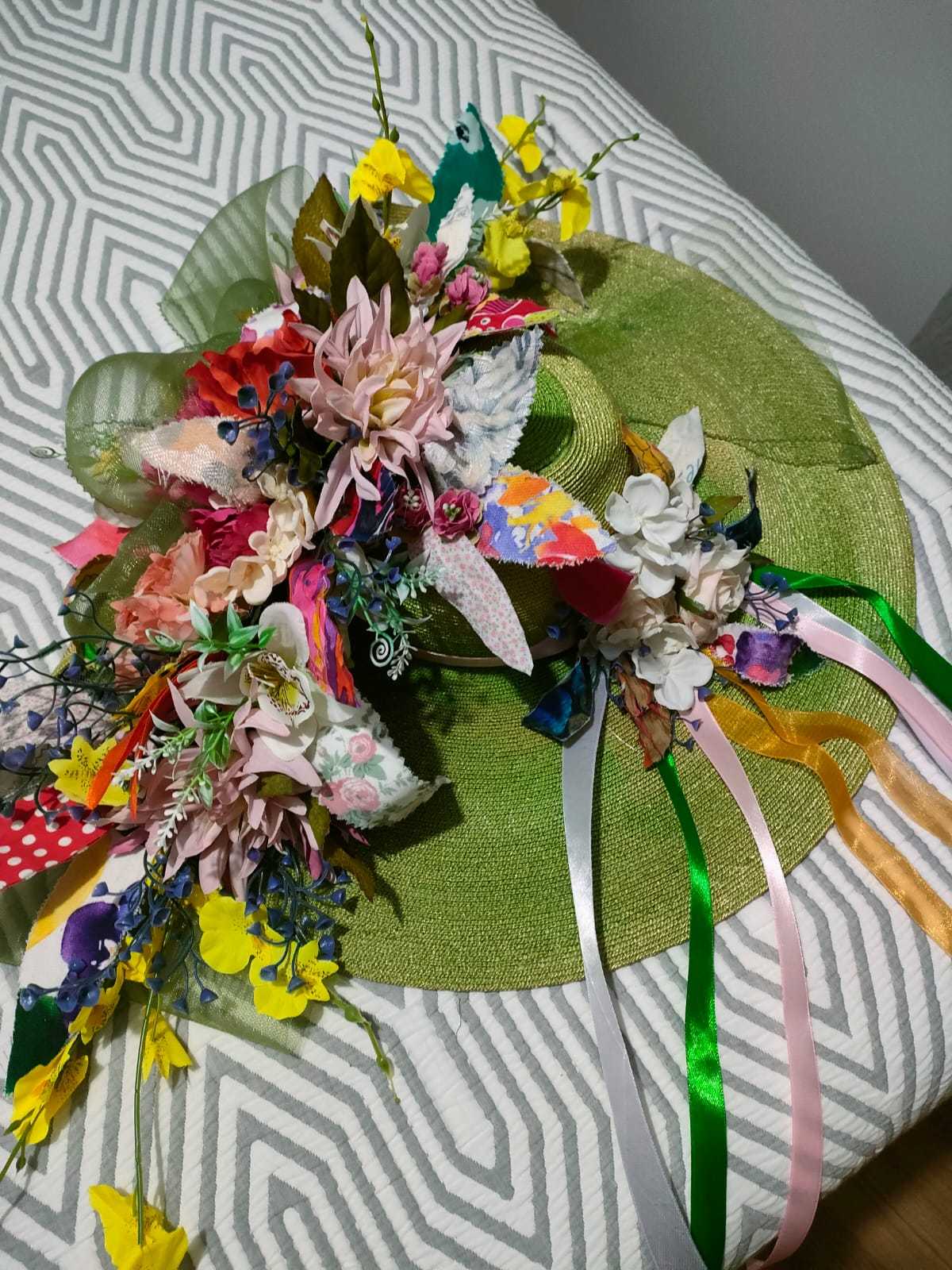 Una obra realizada con material reciclado: lana, flores, pamela… Y todo ha sido elaborado «con mucho amor», como afirma Pilar Duque, «para darle color y visibilidad a esta fiesta».