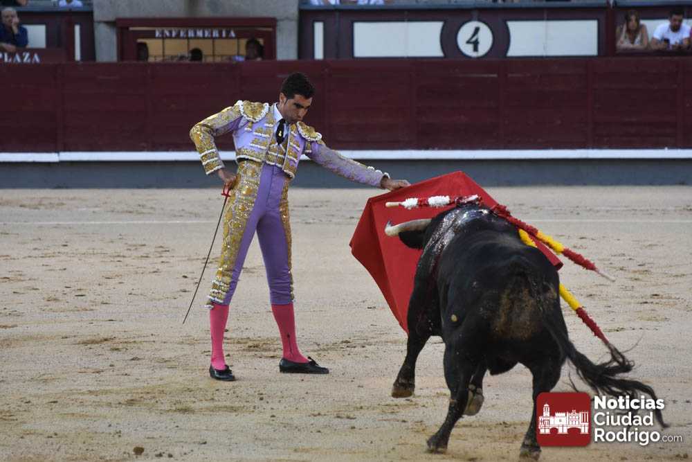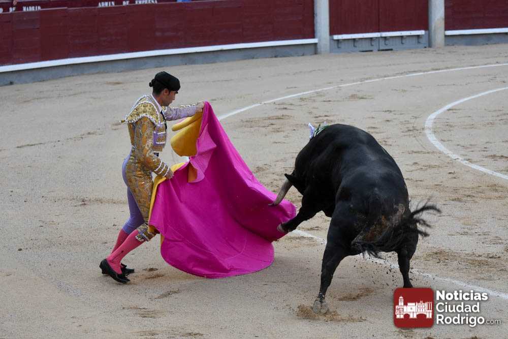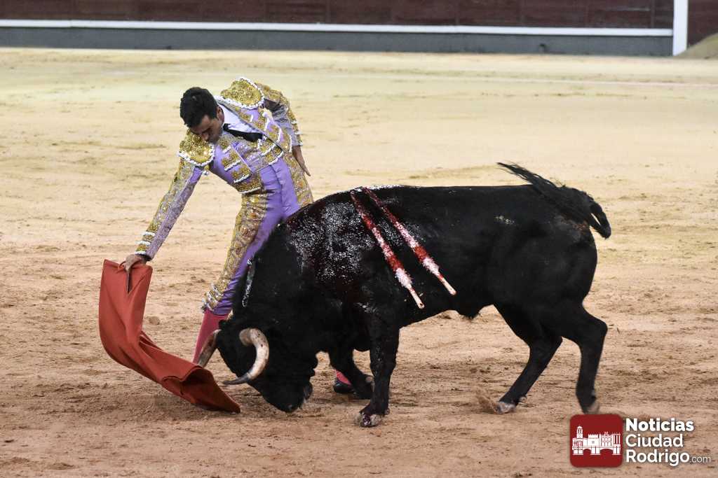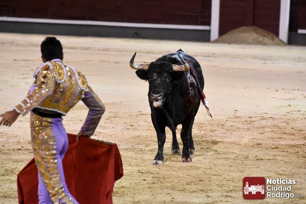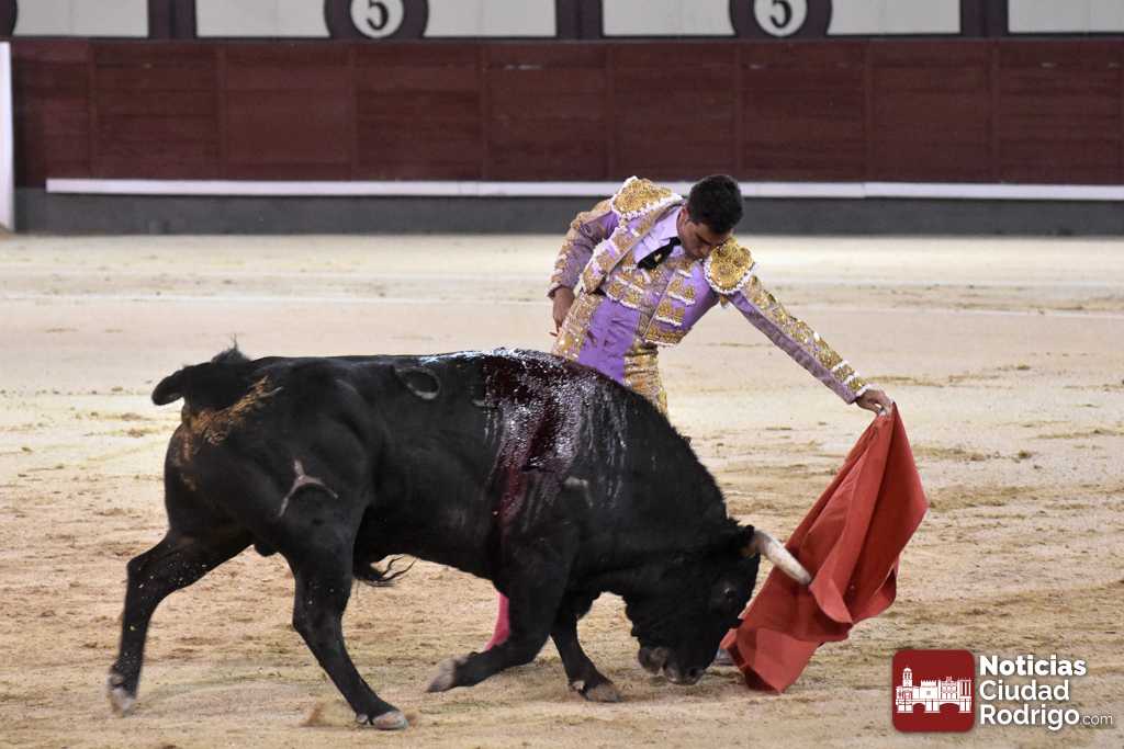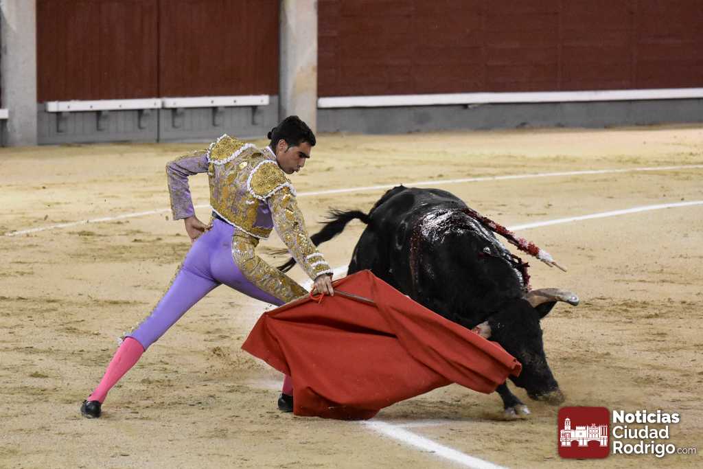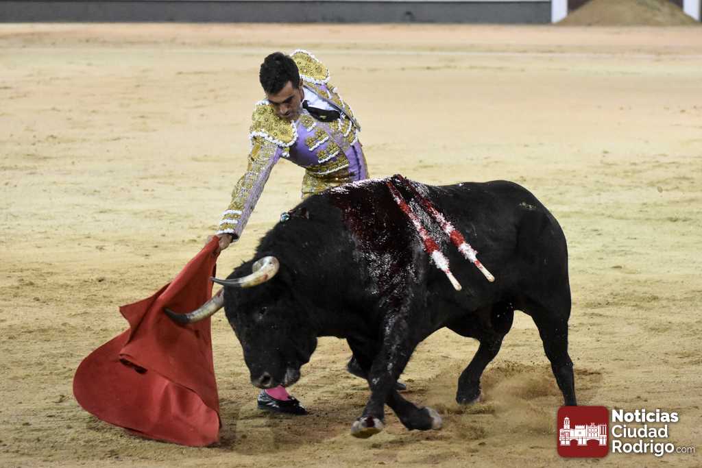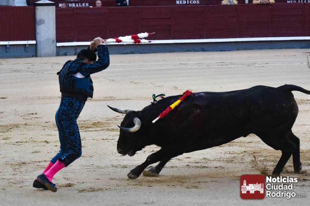 Este cuarto, de nombre “Correrías” fue en el que más esperanzas tenían puestas los aficionados que llegaban desde Ciudad Rodrigo dadás su buenas hechuras. Más allá de conjeturas, la realidad es que el 4o de Retamar no perdió rasgos sus hermanos, pero contó con mucha más clase con el capote y con la muleta, donde Perez Pinto firmó dos tandas destacables con la derecha, bajando mucho la mano, que hicieron sonar los olés en los tenidos. El mal uso del estoque privó al mirobrigense de la vuelta al ruedo, aunque recibió el calor de los suyos una vez terminado el festejo. Una muesca más.