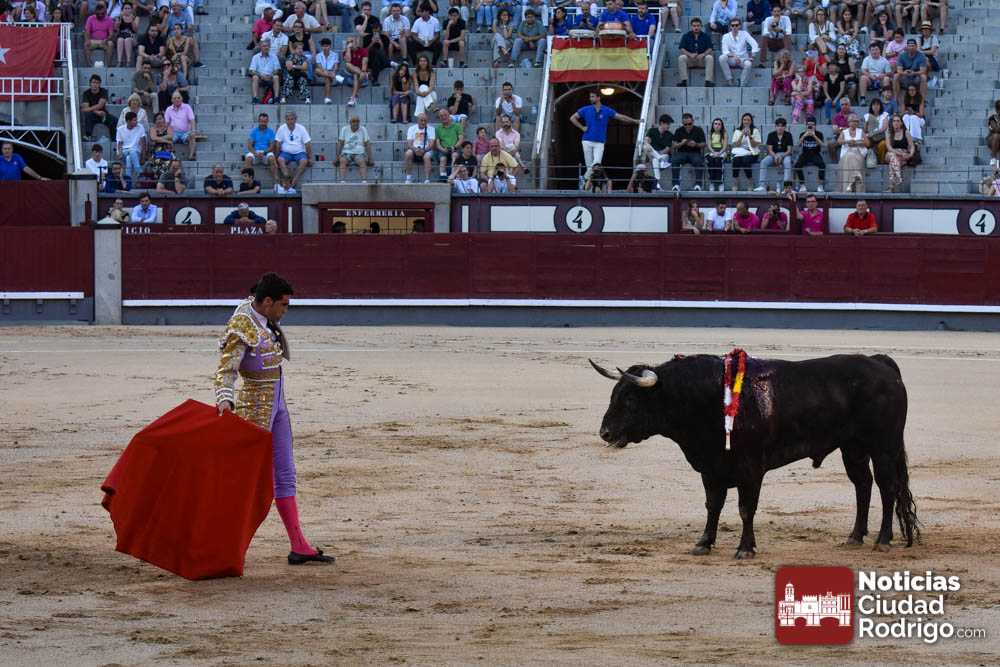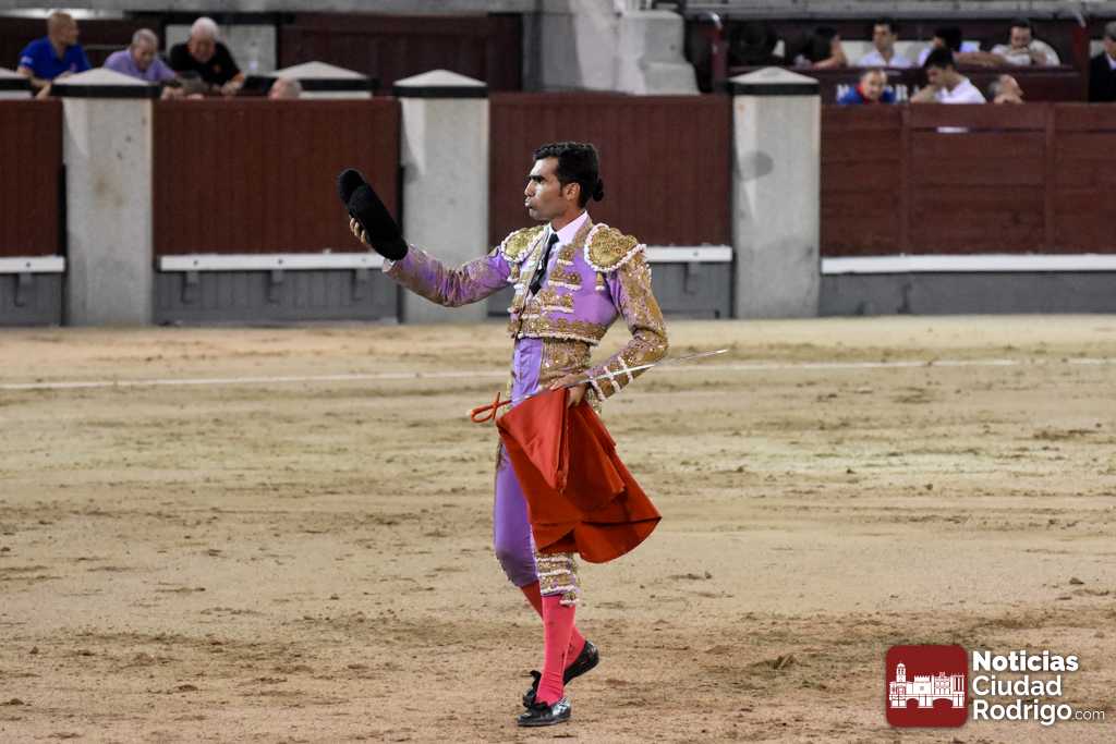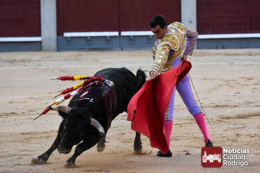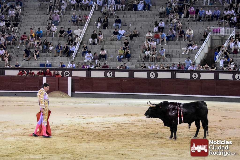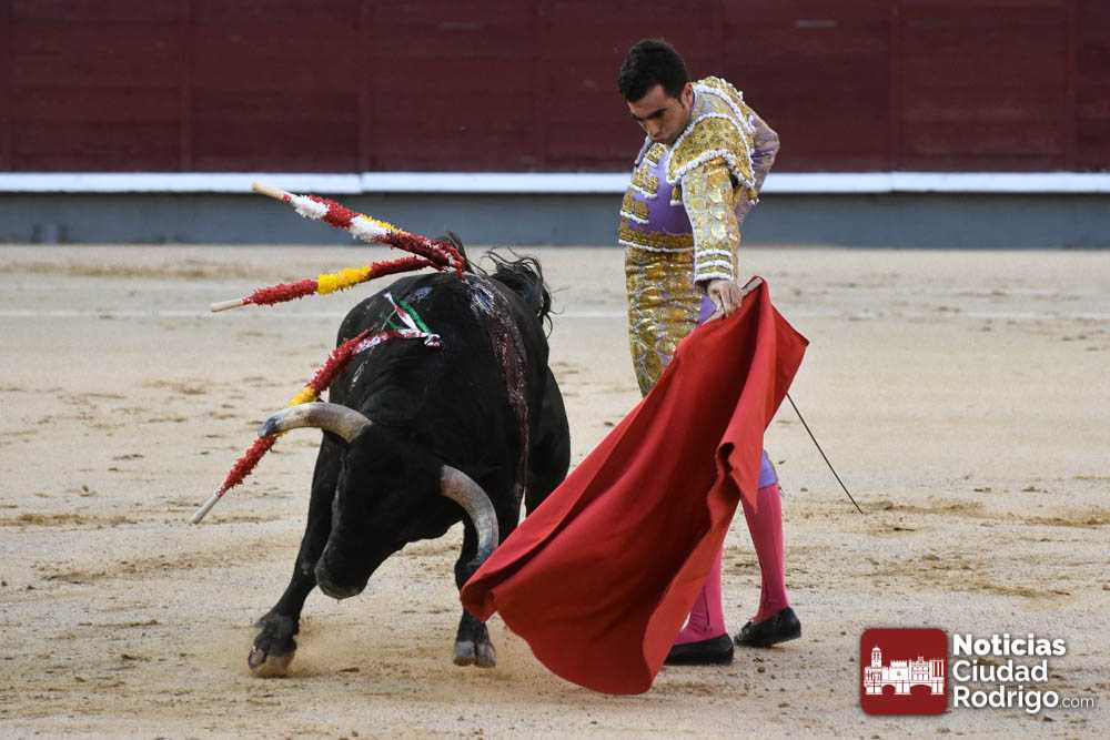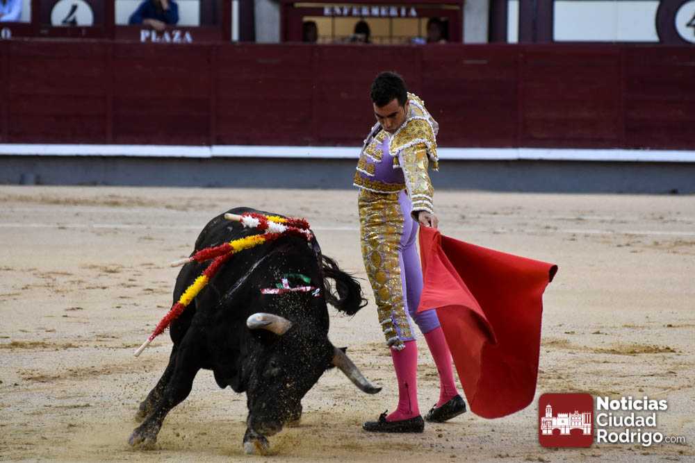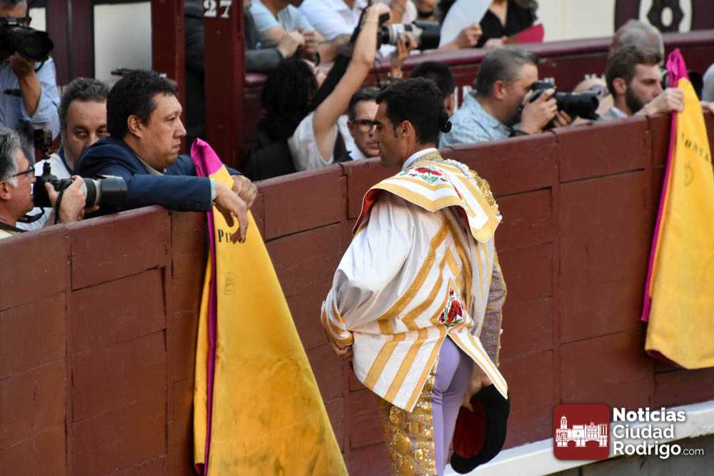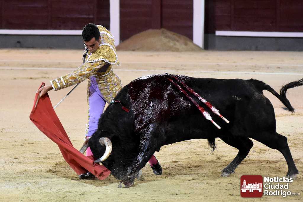 Este cuarto, de nombre “Correrías” fue en el que más esperanzas tenían puestas los aficionados que llegaban desde Ciudad Rodrigo dadás su buenas hechuras. Más allá de conjeturas, la realidad es que el 4o de Retamar no perdió rasgos sus hermanos, pero contó con mucha más clase con el capote y con la muleta, donde Perez Pinto firmó dos tandas destacables con la derecha, bajando mucho la mano, que hicieron sonar los olés en los tenidos. El mal uso del estoque privó al mirobrigense de la vuelta al ruedo, aunque recibió el calor de los suyos una vez terminado el festejo. Una muesca más.