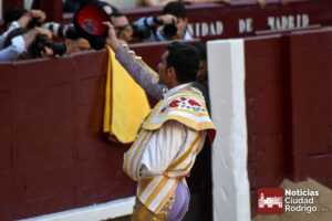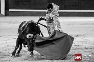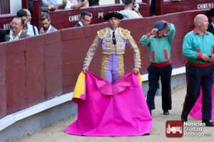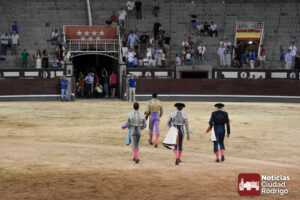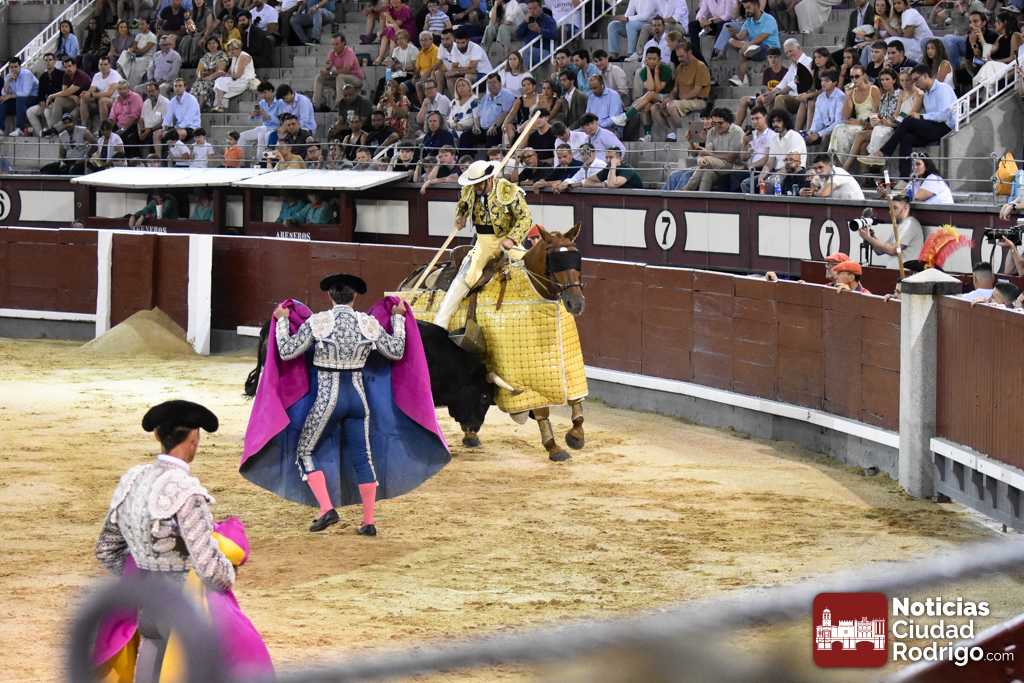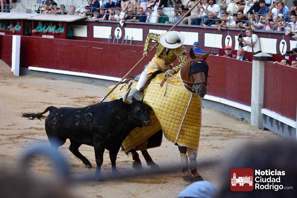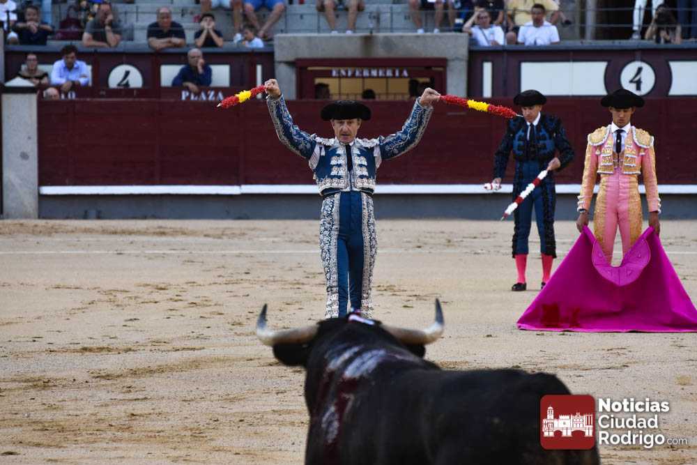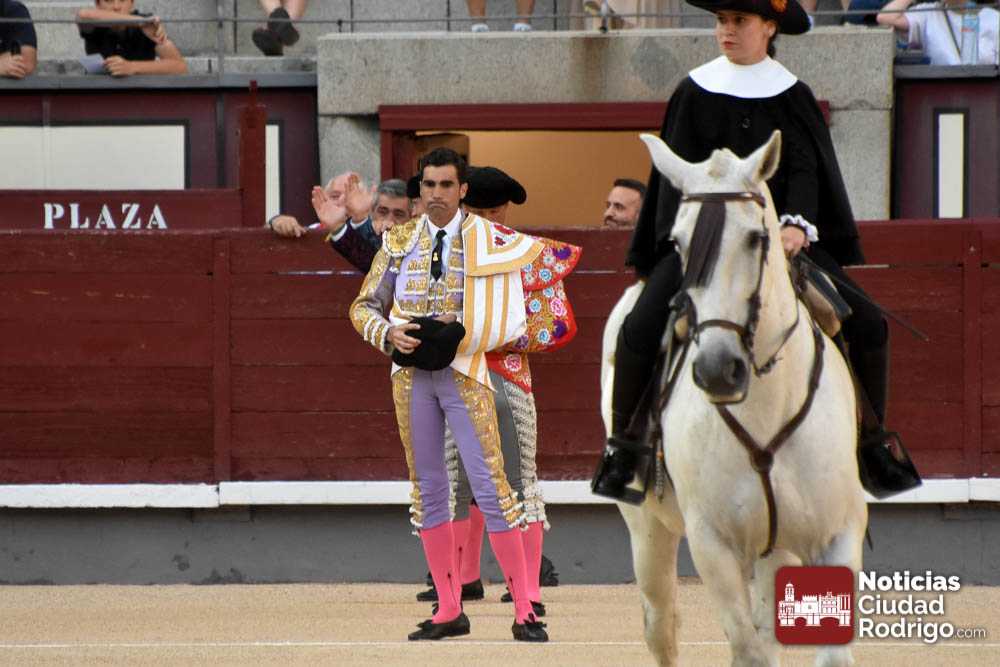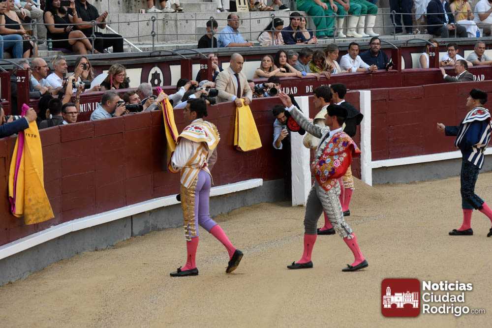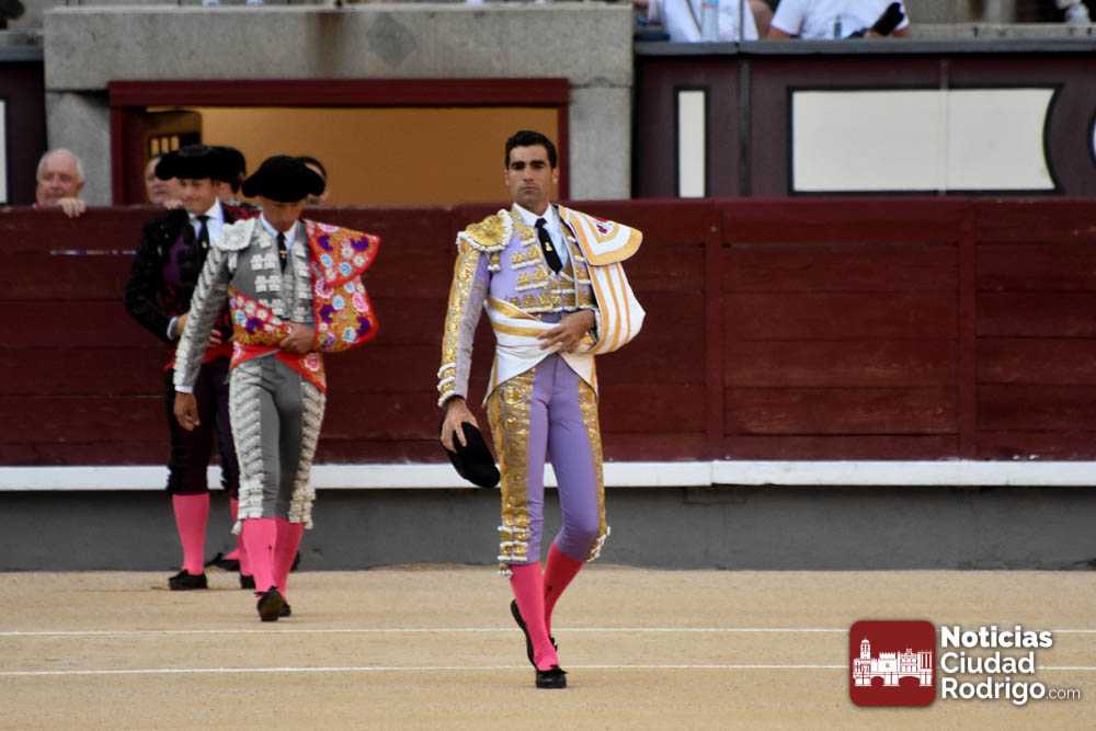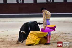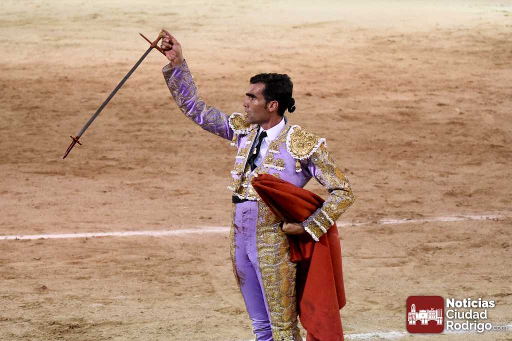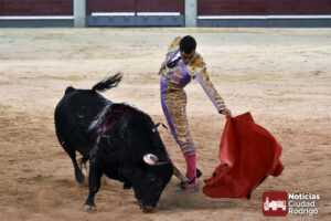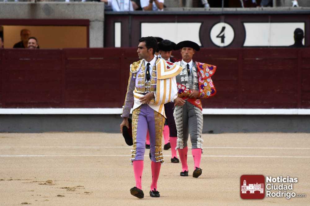 Este cuarto, de nombre “Correrías” fue en el que más esperanzas tenían puestas los aficionados que llegaban desde Ciudad Rodrigo dadás su buenas hechuras. Más allá de conjeturas, la realidad es que el 4o de Retamar no perdió rasgos sus hermanos, pero contó con mucha más clase con el capote y con la muleta, donde Perez Pinto firmó dos tandas destacables con la derecha, bajando mucho la mano, que hicieron sonar los olés en los tenidos. El mal uso del estoque privó al mirobrigense de la vuelta al ruedo, aunque recibió el calor de los suyos una vez terminado el festejo. Una muesca más.